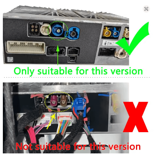My car is the first version, which no longer has the rotating screen. We were told that they will no longer make it like this. I probably have new generation hardware, because everything is completely different in terms of connections. It doesn't look at all like the photos in terms of connector colors and layout.