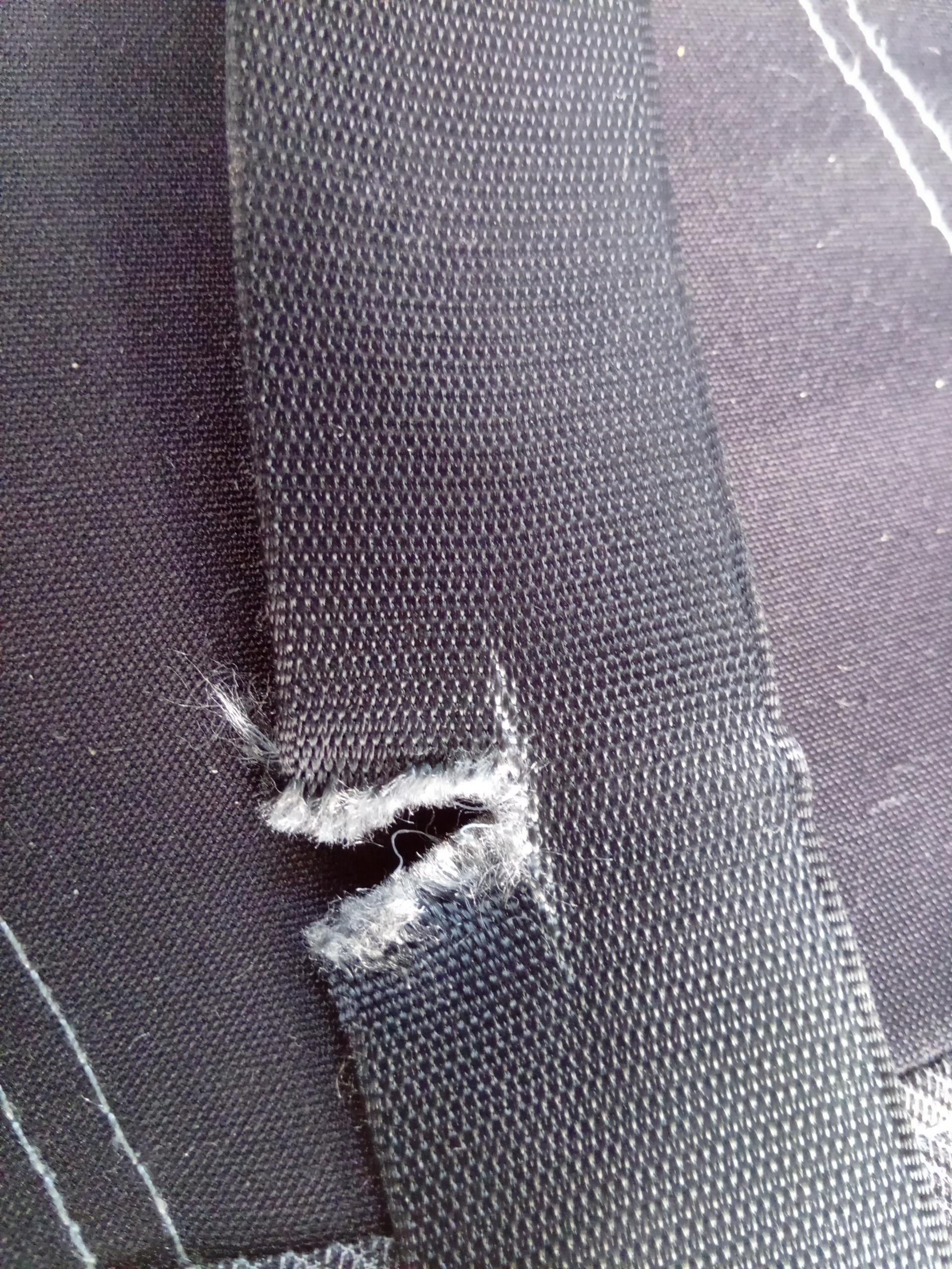 You'll have to replace the entire seatbelt. Just replacing the fabric isn't a simple task, because you've got an inertia reel and pretensioners to deal with, not to mention wiring for the seatbelt warning system.