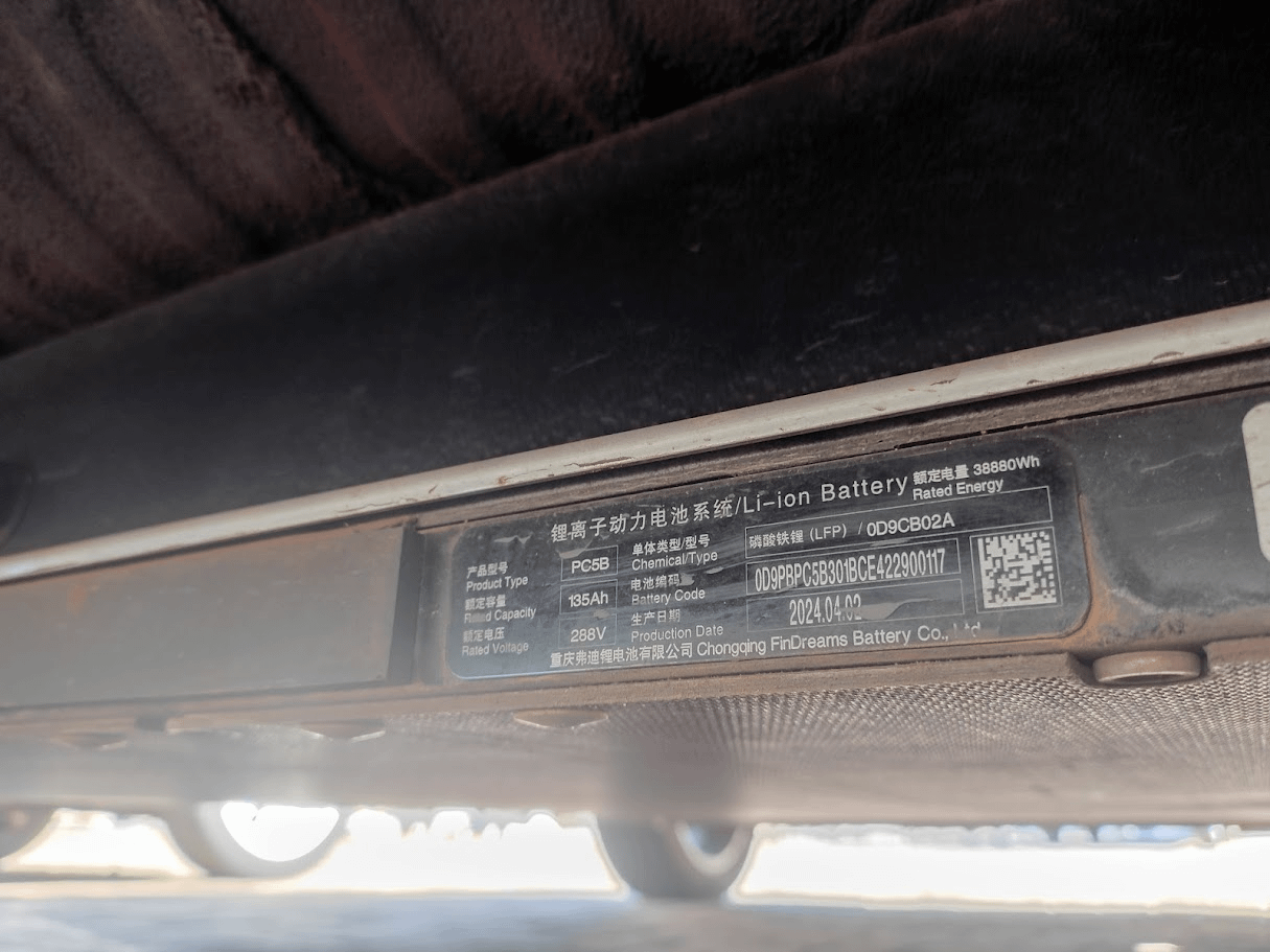 That photo pretty much confirms you have the 38.88kWh hardware physically installed, since the sticker clearly shows 135Ah at 288V. If your real-world math is still dead-on for a 30kWh pack, then it’s almost certainly a software or BMS calibration issue where the car isn't utilizing the full capacity it has on board. I’ve seen some cases where a deep discharge and a full 100% slow charge helps the BMS "re-learn" the actual cell floor and ceiling. If that doesn't change the numbers, the dealer might need to re-flash the VCU or BMS firmware to make sure it’s actually mapped for the 38kWh profile. That’s just the weirdness of these LFP systems sometimes.