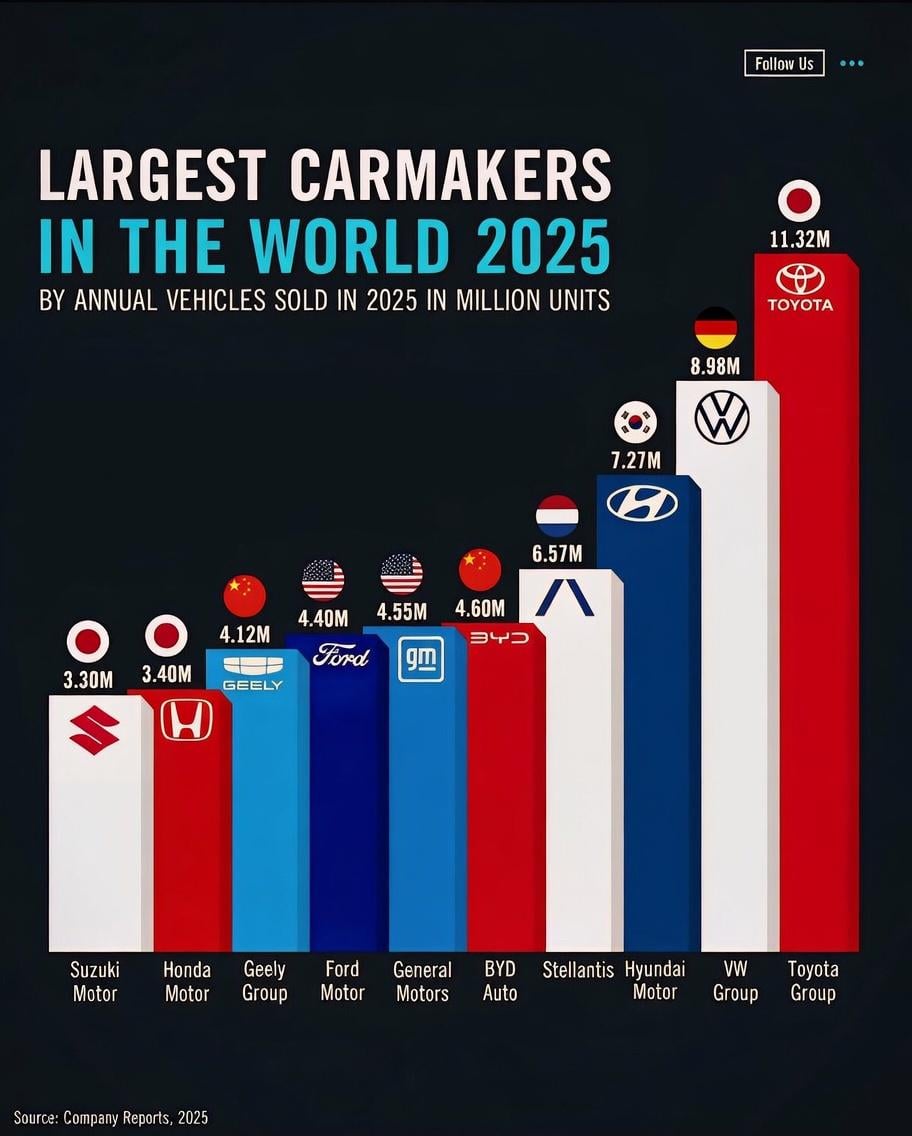 Largest Car Manufacturers in the World by Vehicles Sold in 2025.