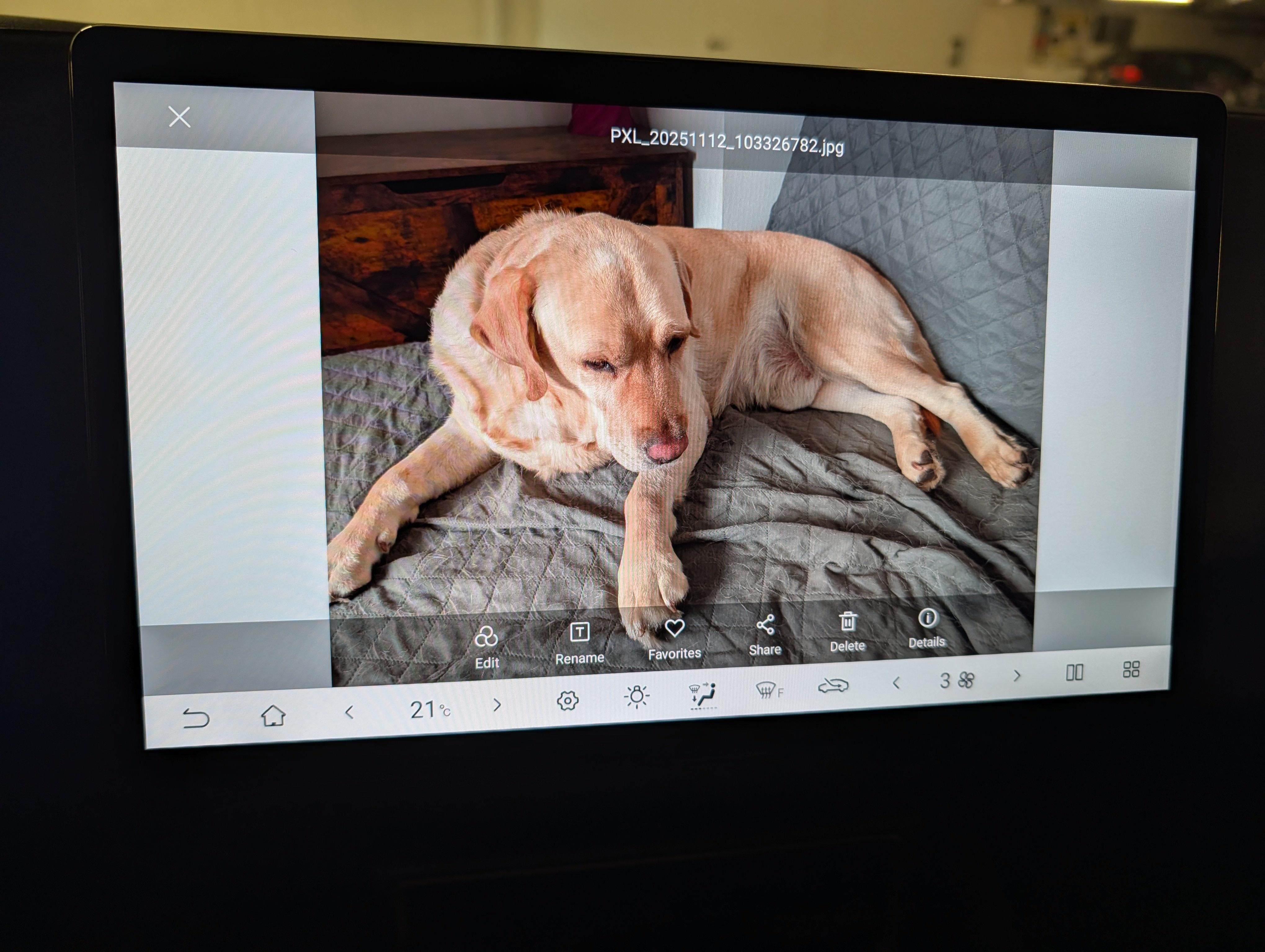 Hmm. How would that option be called? When I opened any of the images in the Albums app, I only see Edit, Rename, Favorite, Share, Delete, and Details. Edit: for context, the car is on version 2.
