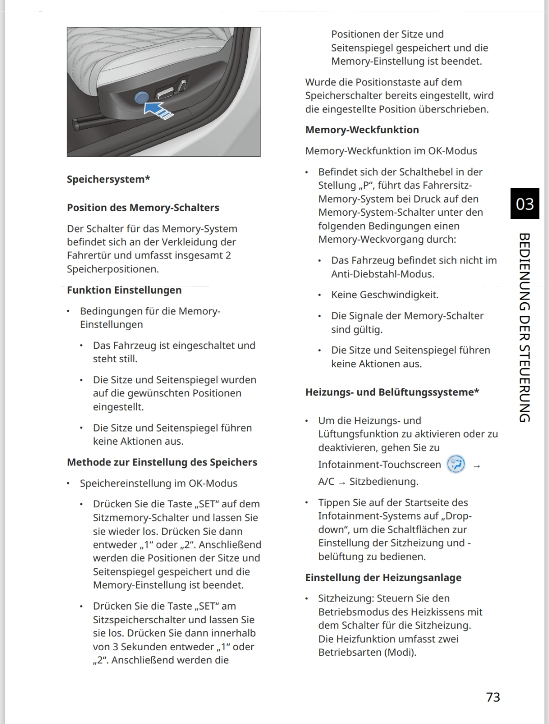 Hey guys. I got my BYD seal recently and I am wondering about the seat position memory function. I already saw, that you can save two positions via the touchscreen. But unfortunately it is really complicated to get there in my opinion. I read the user manual, and it says: "Position of the memory switch: The switch for the memory system is located on the trim of the driver's door and has a total of 2 memory positions." (Translated from german) Am I just to stupid to find the buttons or are there no buttons? The manual also explains how to use the "set" and "1" or "2" buttons to save the current position. I add a screenshot of the German manual.