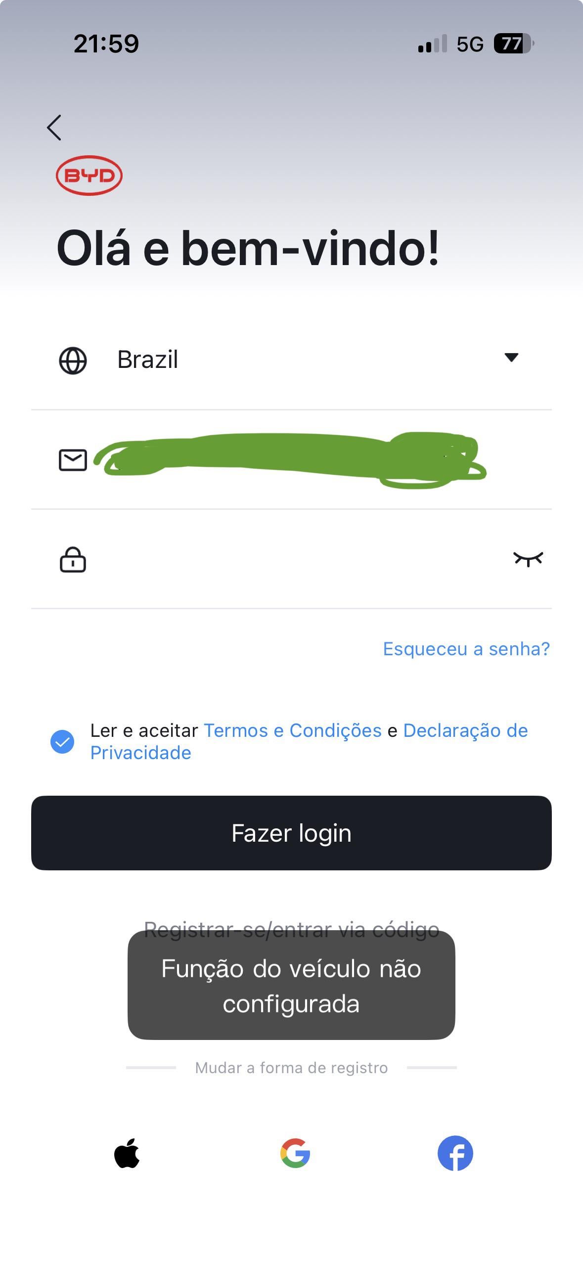 I picked up my car at the dealership a week ago. At the time of delivery, I was informed that it would take 48 hours for my car to appear in the application. They also informed me that it would not be necessary for me to do anything. He would just show up there in my vehicle list. After 5 days I sent a message to the seller and he said he would contact the responsible sector. After he said that, my app logged out automatically and now I can’t log in. What is in the image appears. For those who are not Brazilian and are reading this, the translation of the message in the lower corner of the screen is: “Vehicle function not configured” I’ll probably have to go to the dealership to solve this, but I wanted to know if anyone here has been through this. Thank you