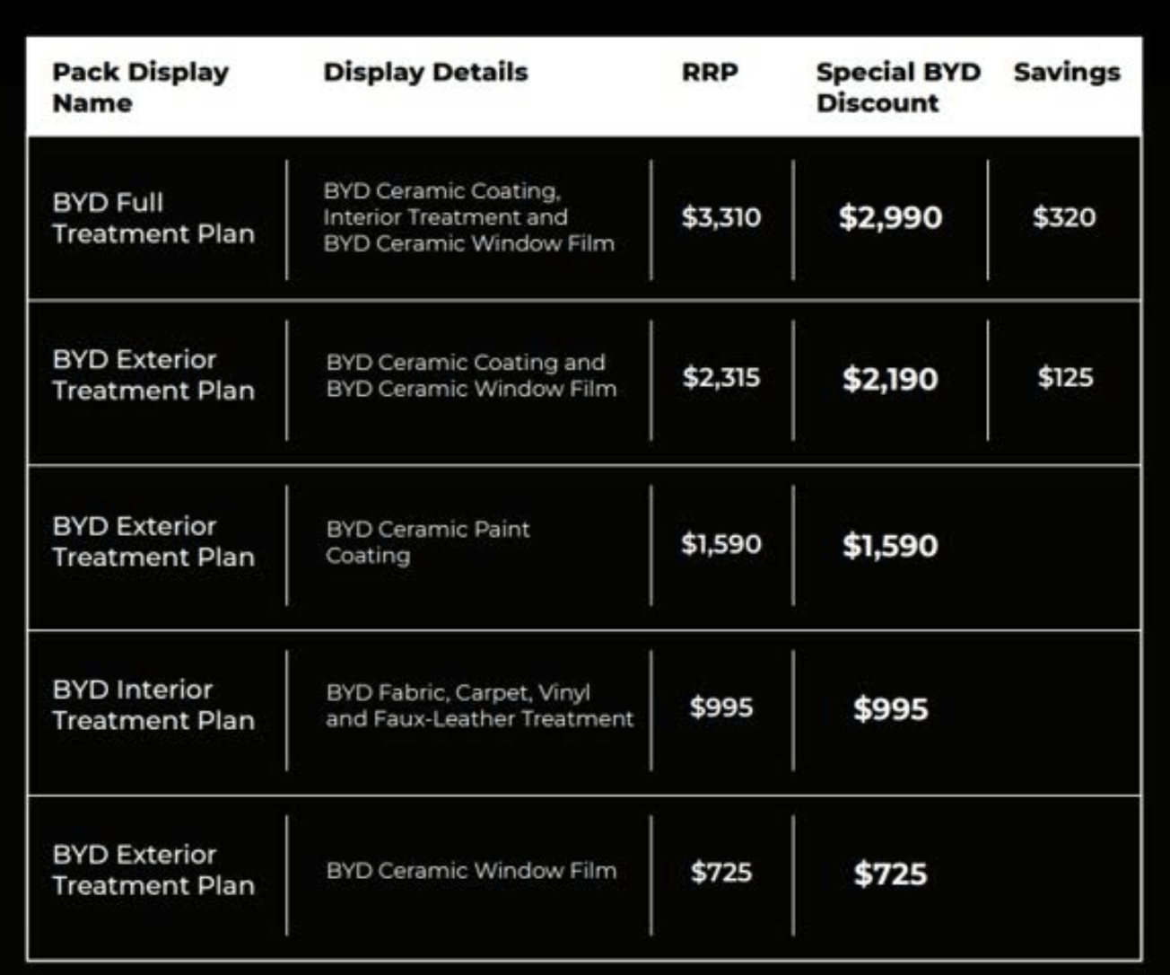 Sorry, my post seems to have been gobbled up by the pic. Was checking if anyone got the BYD package and if the quality was good? And also if others got the ceramic paint elsewhere and what the price comparison was? Thanks
