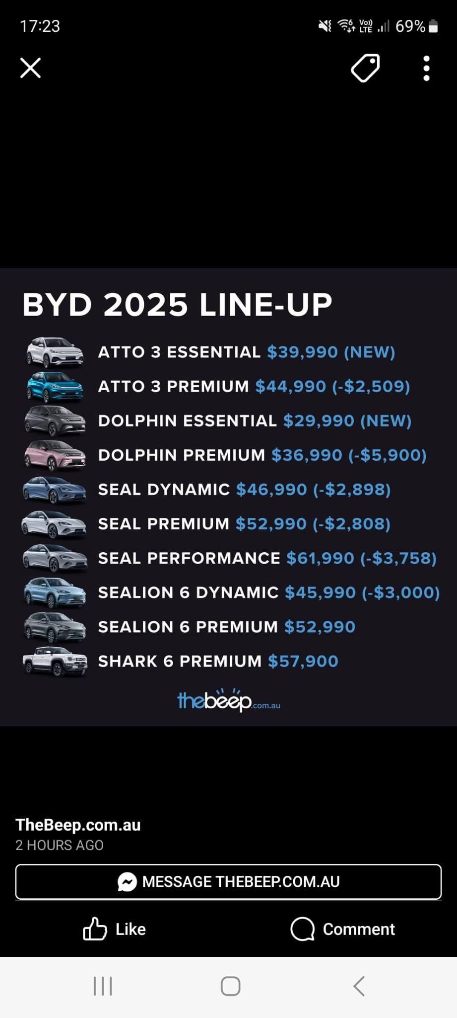 Was having a look at the BYD website as I do from time to time and noticed a massive decrease in the prices of the premium and performance trims which also seems to be applied to their other vehicles. Also the fact that you can no longer get the light blue exterior colour on any of the trim levels with the shark grey no longer being a performance exclusive colour and is now available on the premium too. Any thoughts?