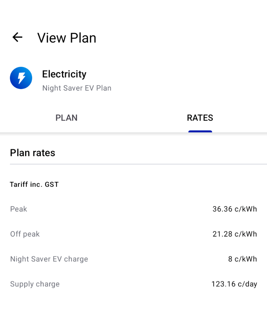 On an AGL EV plan, plugging in from 10p to 8a (which will be mostly EV 0.08kwh rates) will still be FAR cheaper than the $120 per week I pay to fill my V8.