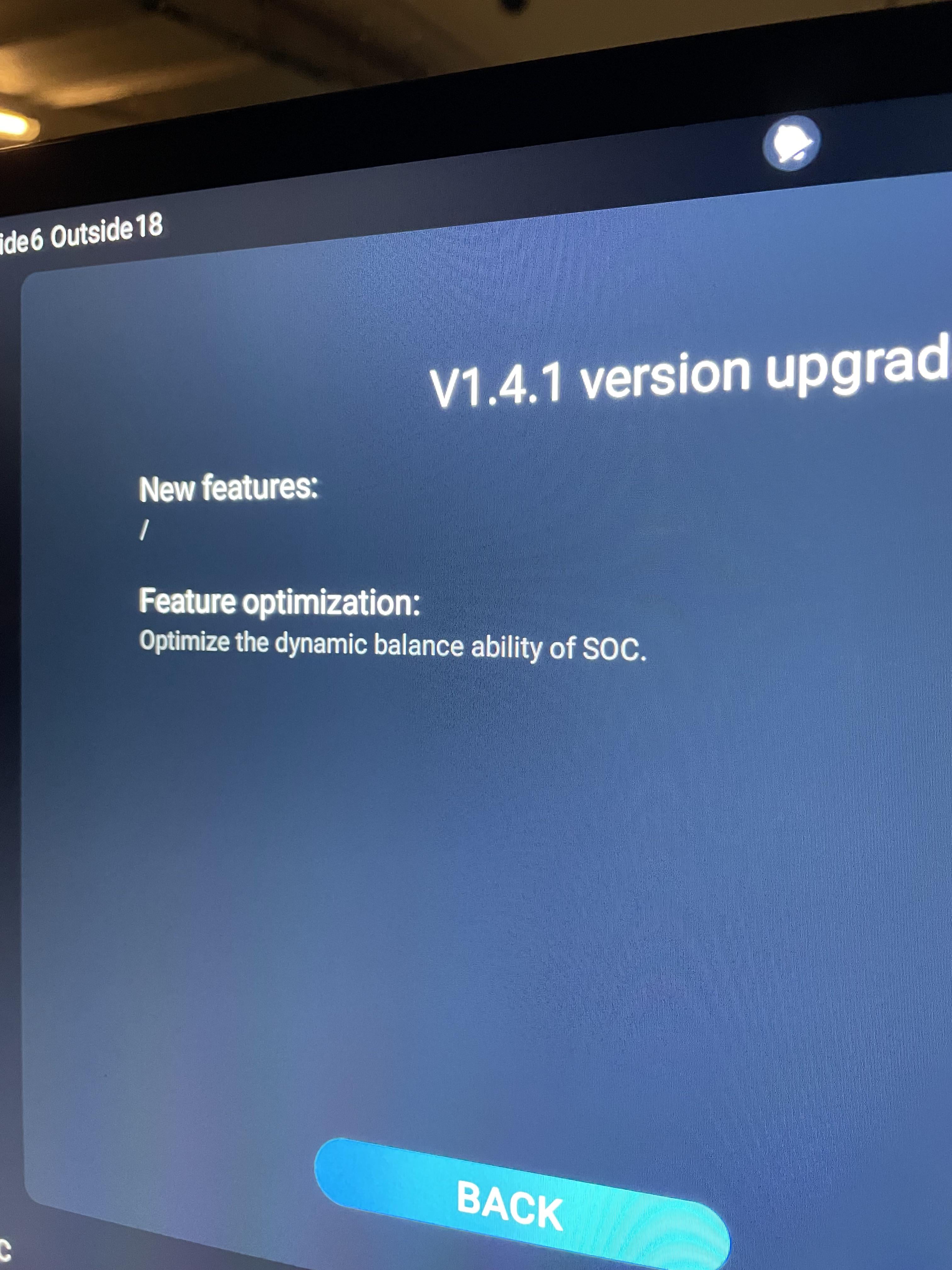 The v1.4.1 update is the overall system not a OTA "patch" update for lack of a better term. 1.4.1 is supposed to calculate the SoC more accurately - dynamically but on the FB group people haven't noticed any difference. OTA 2506 is supposed to be coming soon with that brings a major UI upgrade.