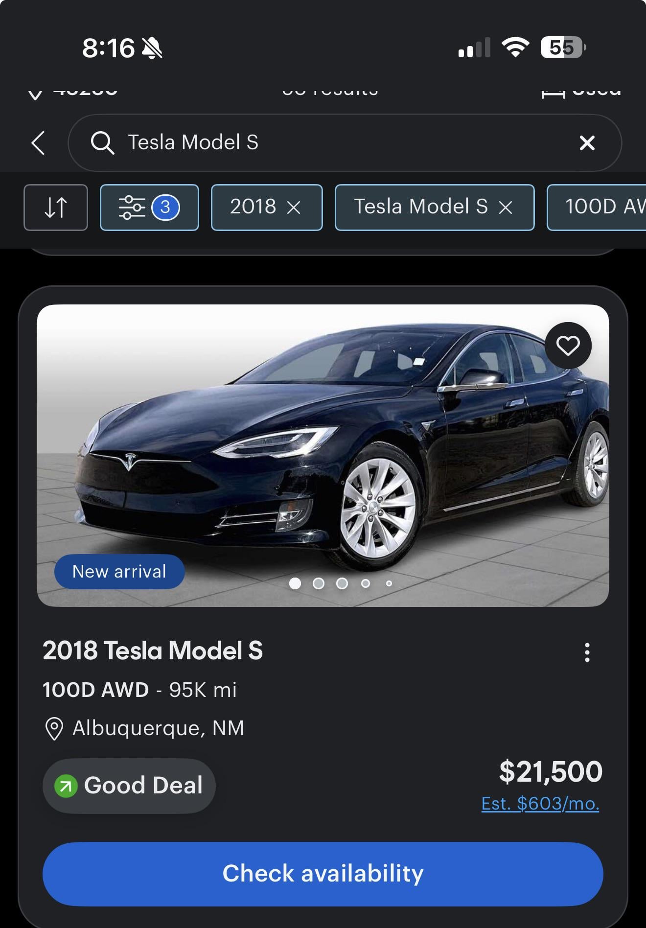 Where? I'm seeing amazing deals on used Teslas lately.