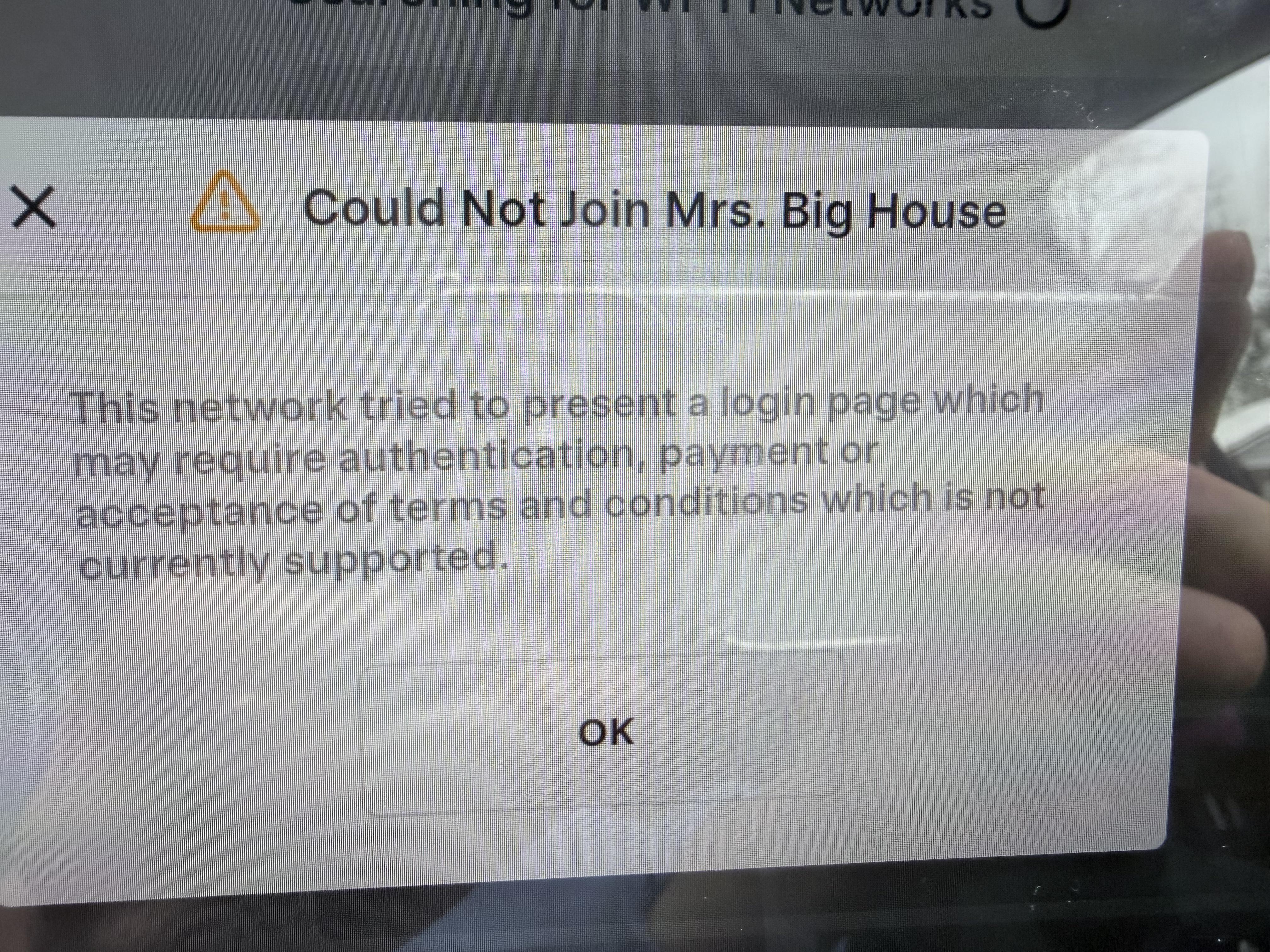 I tried connecting to my phone hotspot and that worked. However the software download stalled at about halfway through and I can’t leave my phone in my car all day waiting for it to continue.