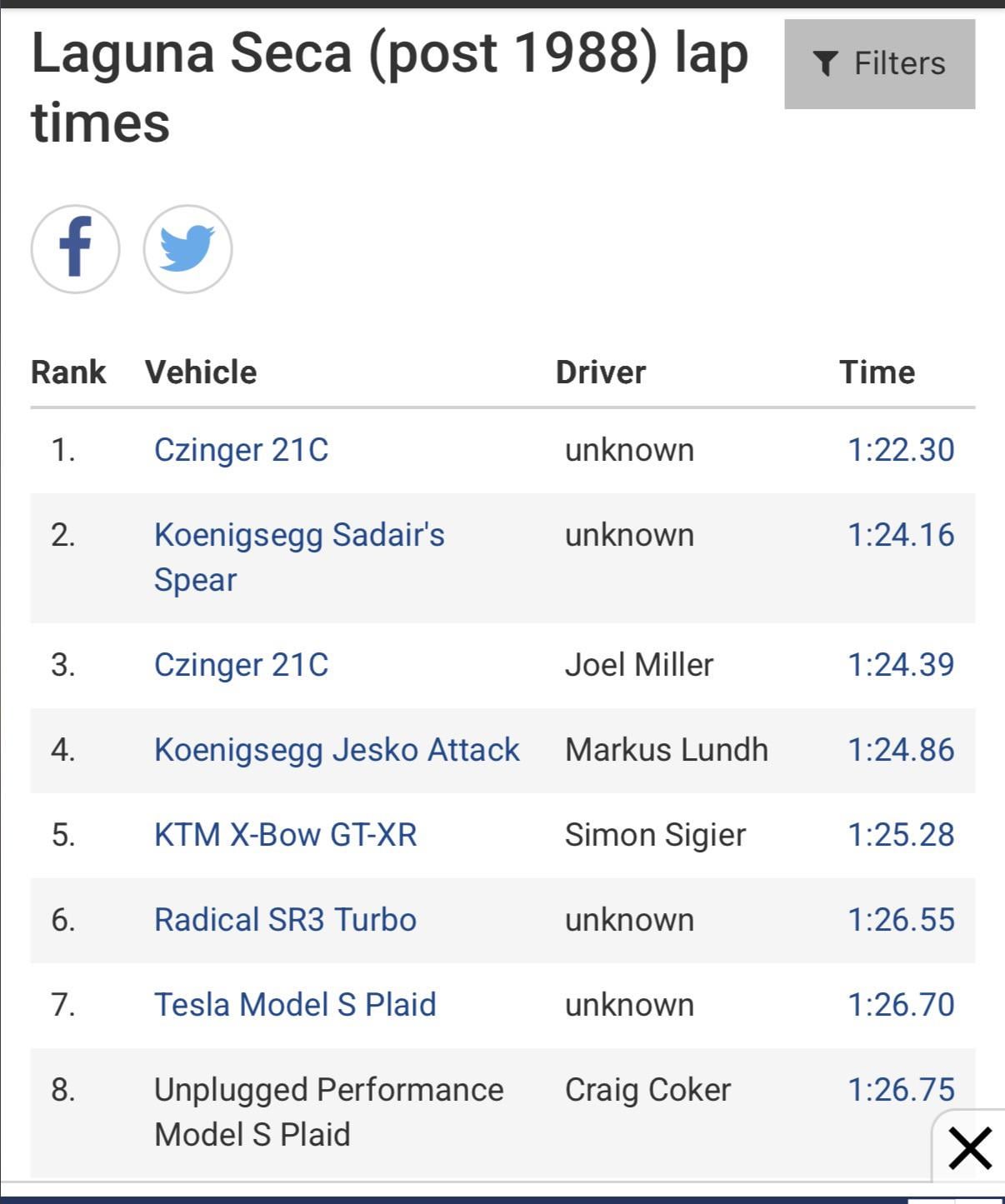 Are you sure? A track pack Plaid has enough raw horsepower and torque to set faster qualifying laps than literally ANY production supercar or hypercar on Laguna Seca already. It just won’t keep up on long runs when you hit the thermal limits. It only loses to purpose-built race and track cars on qualifying.