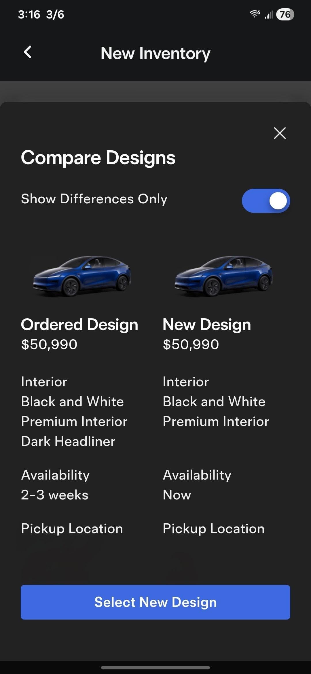 I took an inventory vehicle with my 3 but there hasn’t been any changes happening so getting it sooner was nice.