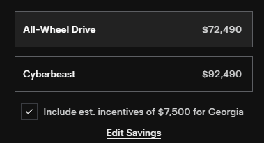 They need to extent FSD transfer to the cybertruck and offer 1.99% APR Also why doesn’t the $7500 tax credit apply to the 79,990 version?