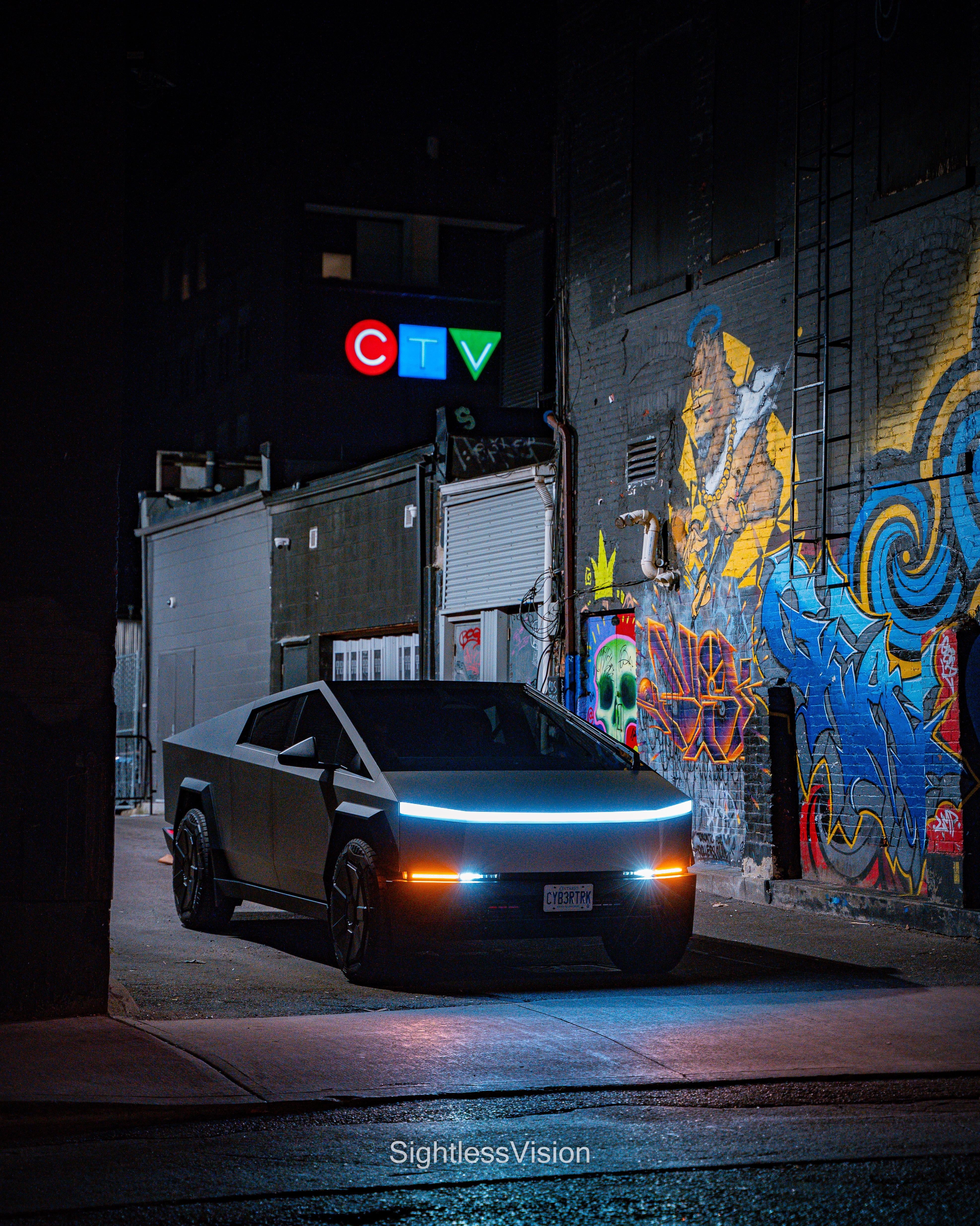 Did a photoshoot with our new Cybertruck in Toronto last week. Shoutout to Sighlessvision on Instagram for his fantastic work. https://www.instagram.com/sightlessvision?igsh=MWdmcXl0eXN6ZmlyYw==