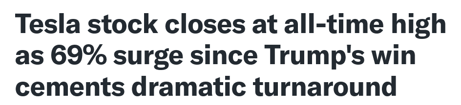 No, Enron tried to create its own Energy exchange which failed horribly, as there was nothing discrete to “buy” except “energy futures”. This is the early “payback” of Elon’s bold strategy endorsing and hedging towards an election candidate. His “hedge” is paying off now, and the more involved he is in D.C. = Large investors “hedging” more capital. DC policy and power = future business deals & profits is the narrative here. Large funds reading the tea leaves. FSD being the golden ticket. May also help if a new DOT and other NHTSA leaders are willing to work with Tesla now and less pressure on Unionizing. If it holds these prices for a few weeks then it could be seen as “multi-year consolidation” from the previous ATHs of Nov 2021 (414).