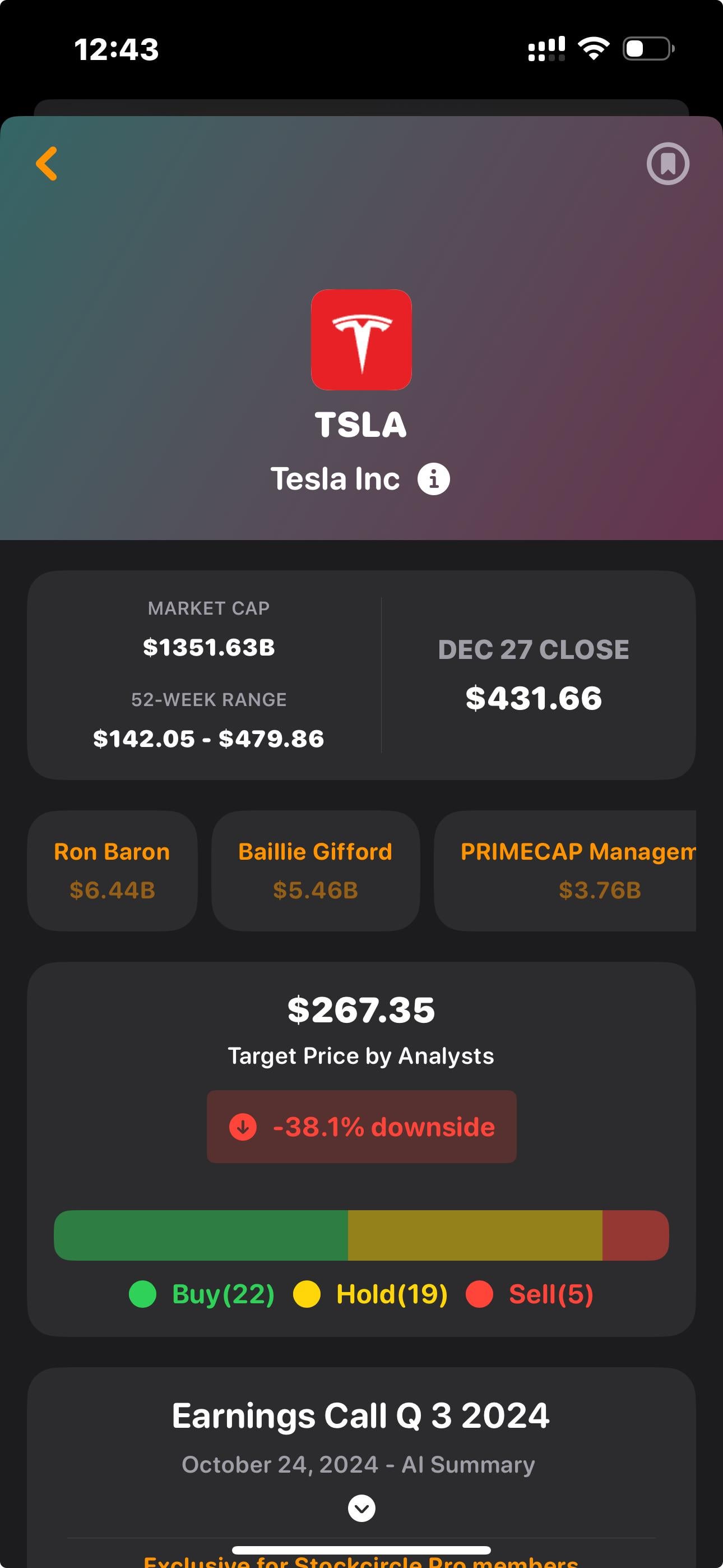 For a while 52 wk high was 420.69