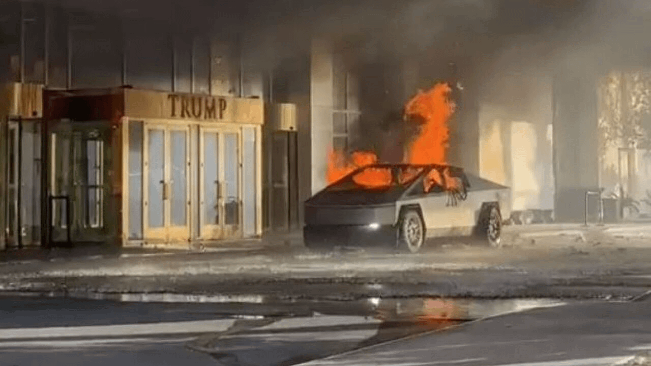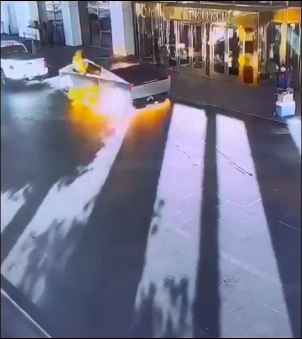Cybertruck, fireworks, parked right in front of the trump lobby. Definitely looks like a bomb went off - not just fireworks. This seems like a middle finger to Trump and president elect Musk. This picture will be on the cover of Time magazine. "America's Future". https://preview.redd.it/mf2k7lm75gae1.png?width=1280&format=png&auto=webp&s=2ea80345a2a715a3bf2bae86d4b6b68c25ae582f