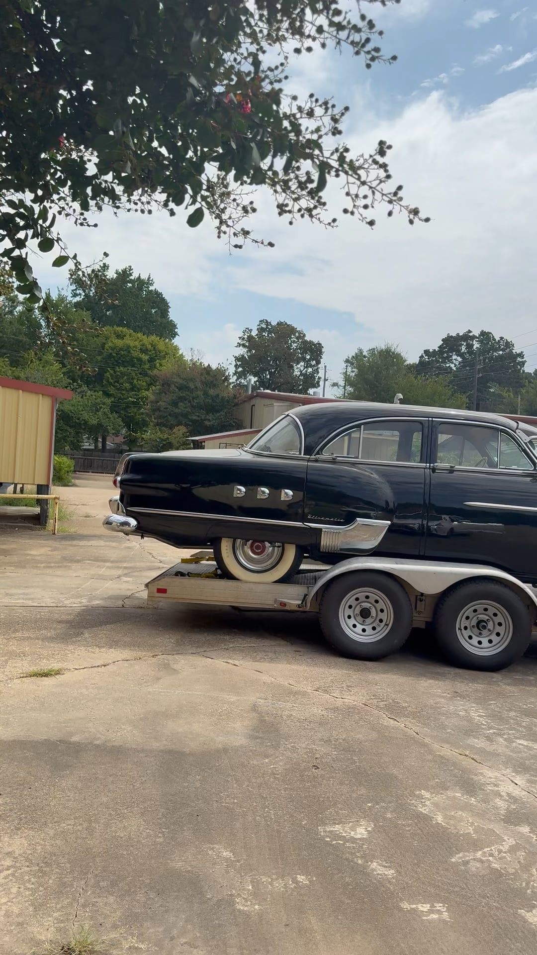1951 Packard Patrician being pulled by a Cybertruck