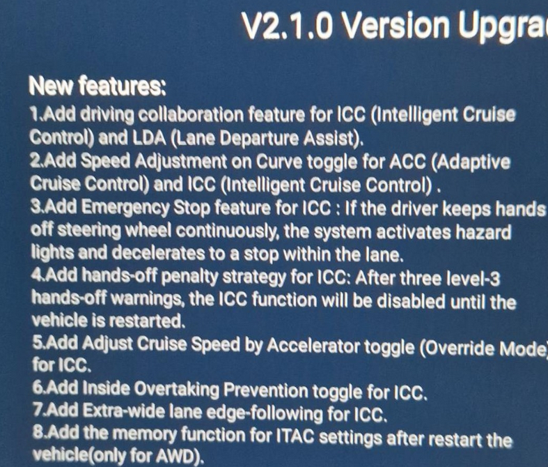 Same can confirm. I have 2.0 ota update. Modules updated in the dealer. Some features enabled in the UI which will come in 2.1.0 ota update supposedly. Now obd is locked. Quick info: I'm in Türkiye tho. We have the 160kw which has some stuttering issue while full acceleration around 95-105 kmh. Datas are collected from car via engineer connected to the car. These module updates made it less noticeable.