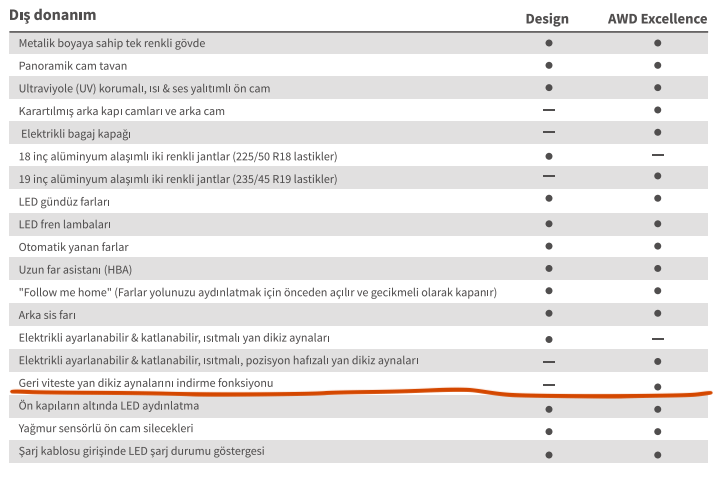 You should've bought on the European side of Istanbul to have that feature. Ok, jokes aside... It's probably locked by software. Without using translation it even seem that you tires are different too, which is odd. The dealership here just told me the Design and Excellent have exact interior. Just the HUD it being AWD are the only differences