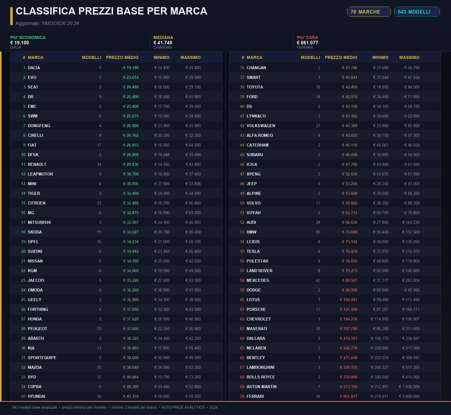 Classifica prezzo medio per Brand auto, cosa ne pensate?