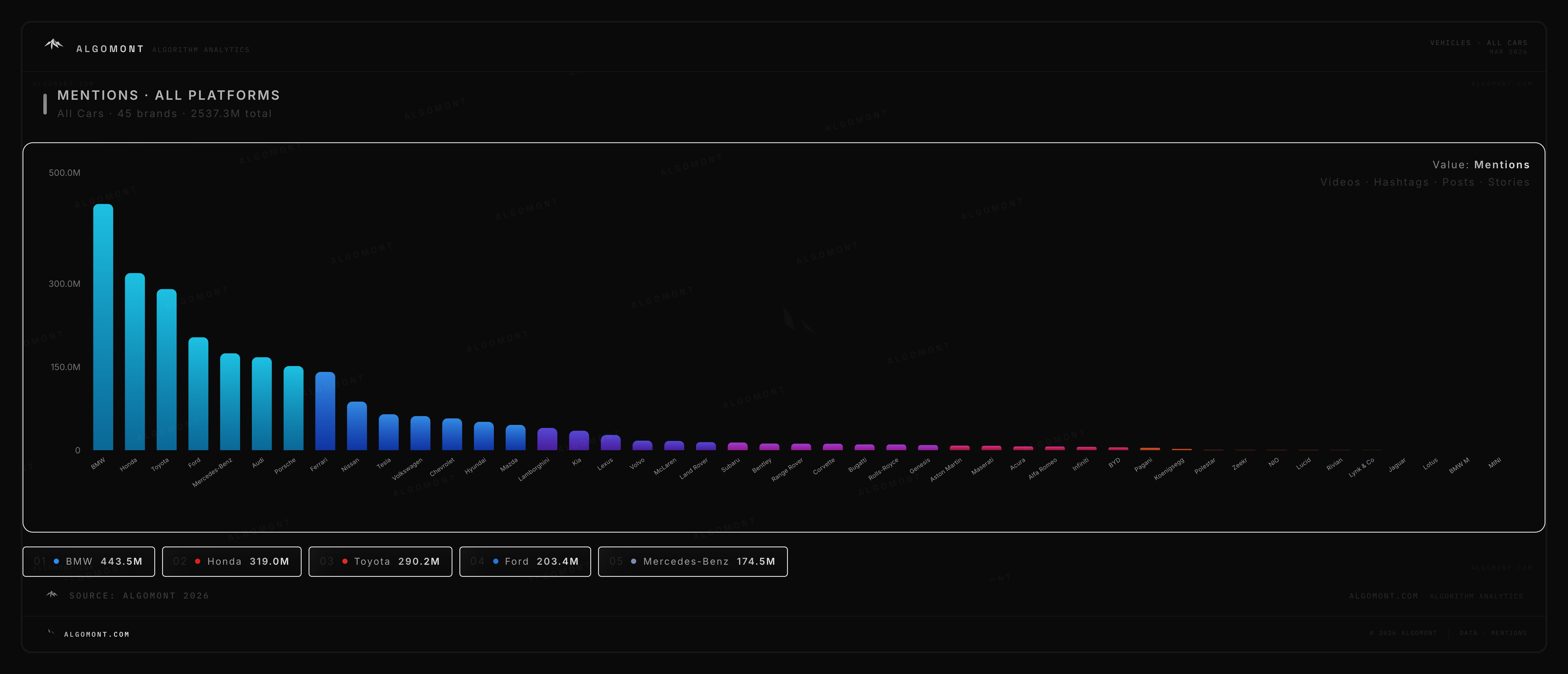 the car brands with the most mentions in social media.