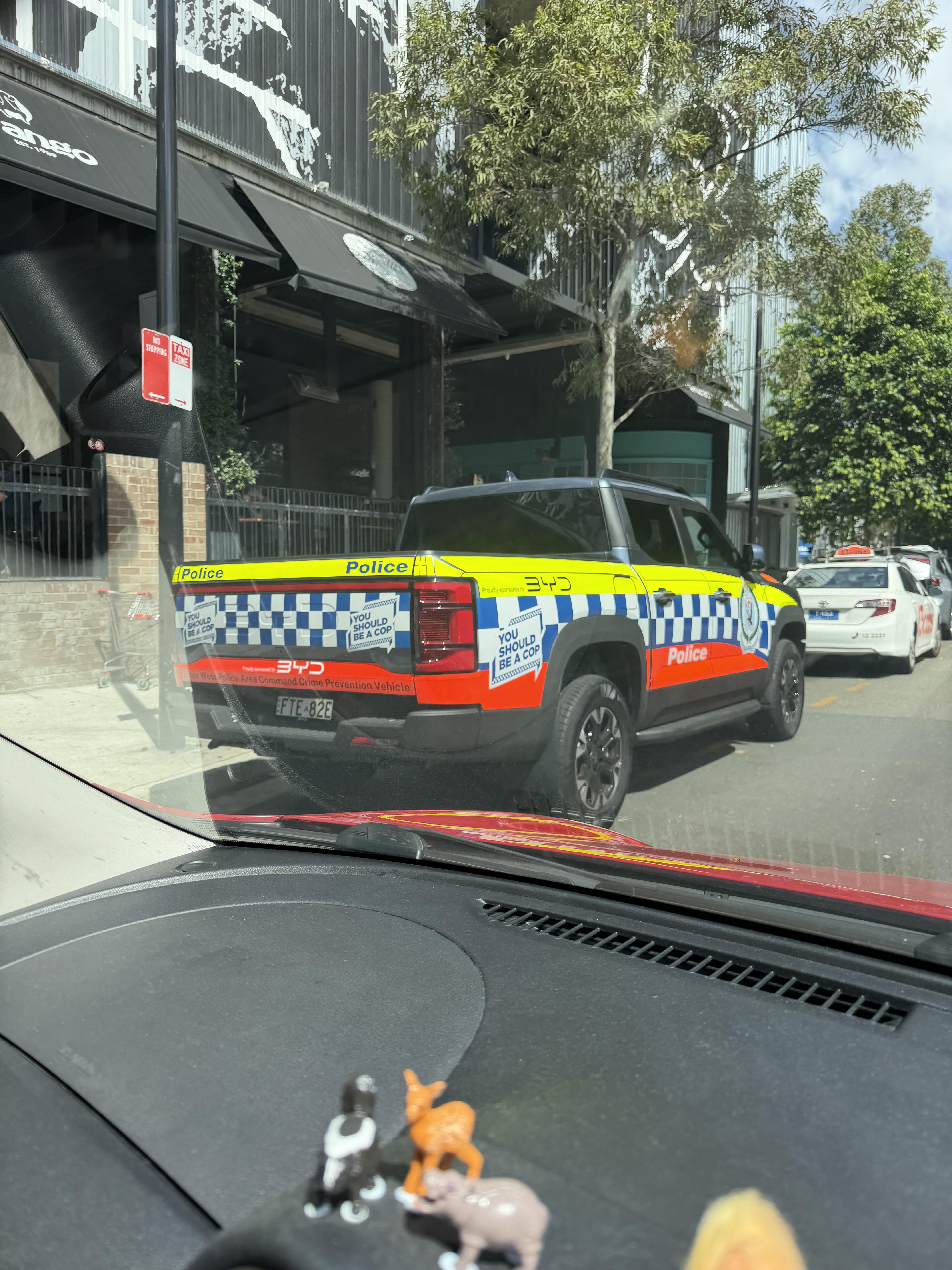 "Proundly sponsored by BYD" - it's more a marketing vehicle than a patrol one I guess