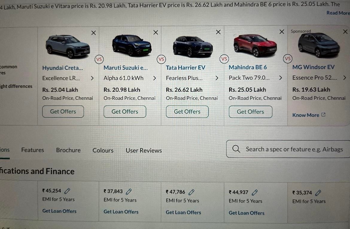 > This is laughable when compared to 79 kwh battery and 282 bhp of be6 OR 235 bhp and 75kwh battery of harrier EV at lesser price.
