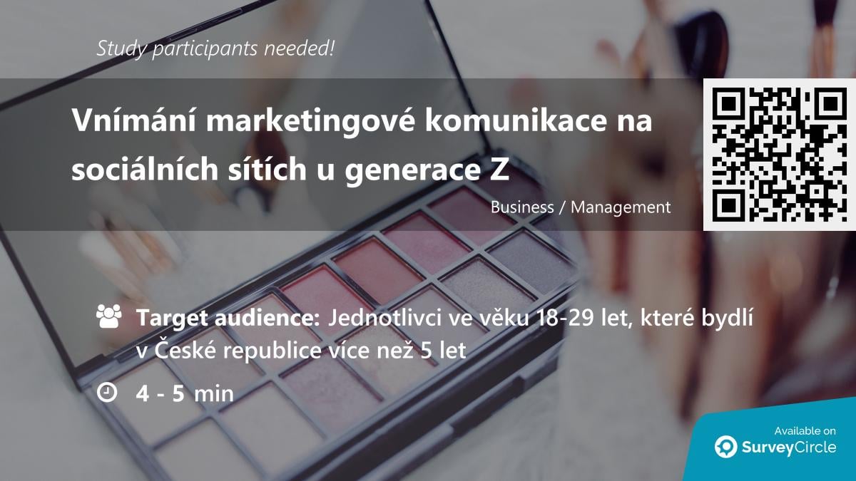 Participants needed for online survey! >**Vnímání marketingové komunikace na sociálních sítích u generace Z** >[https://www.surveycircle.com/RPK8HT/](https://www.surveycircle.com/RPK8HT/) [#GeneraceZ]() [#marketing]() [#SociálníSítě]() [#kosmetika]() [#survey]() [#surveycircle]()