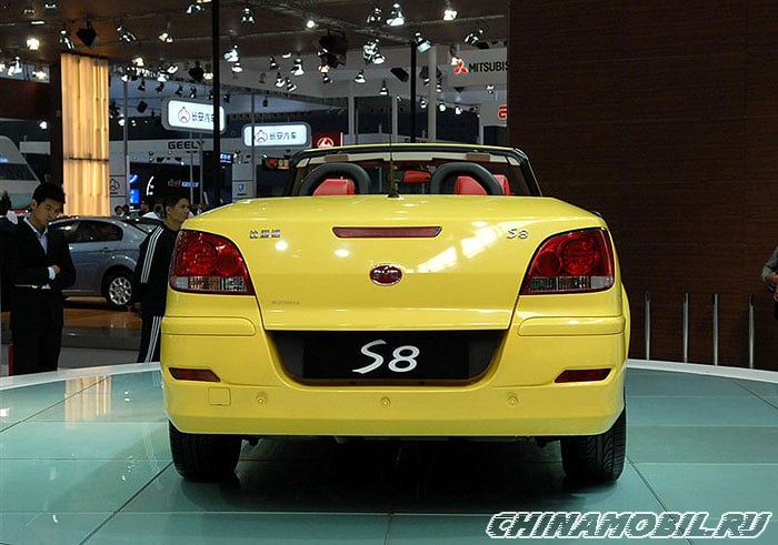 Powered by a 2.0-liter, 4-cylinder petrol engine (BYD483QB) producing roughly 140 hp (103 kW) and 186 Nm of torque. It featured a two-stage folding hard-top that opens or closes in approximately 25 seconds. Designed with a red and black color scheme and blue LED dashboard lighting. It included high-end features for its time, such as a NAVI voice navigation system, backup camera, and keyless start. Despite its ambitious design as China's first "home-grown" hardtop convertible, the S8 saw very limited commercial success, with only a small number of units (reportedly fewer than 100) actually sold before production ceased.