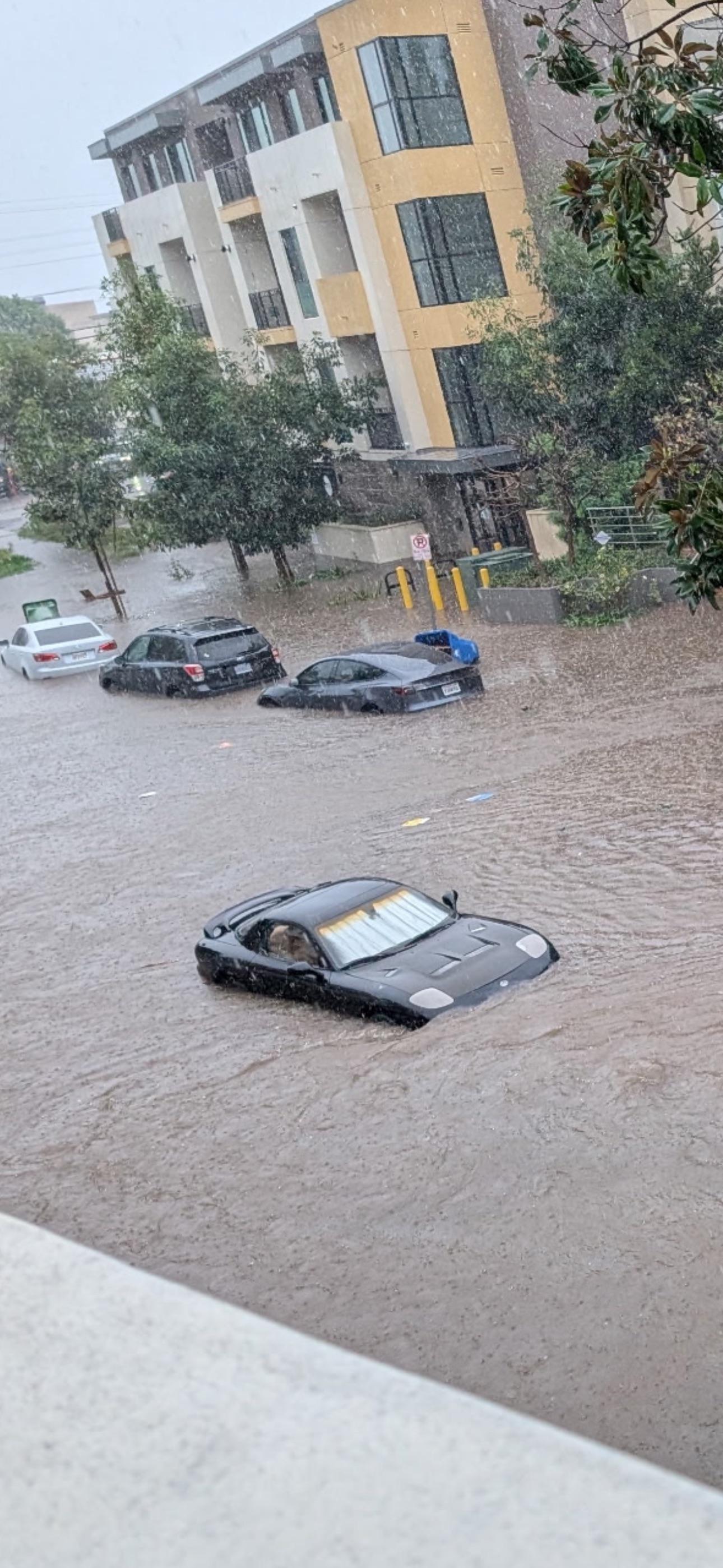No that's not a model 3, it's a completely submerged BMW i7. It's Parked right next to that completely submerged Honda Pilot, which is in front of the completely submerged 1969 Chevy Malibu. Prove me wrong.