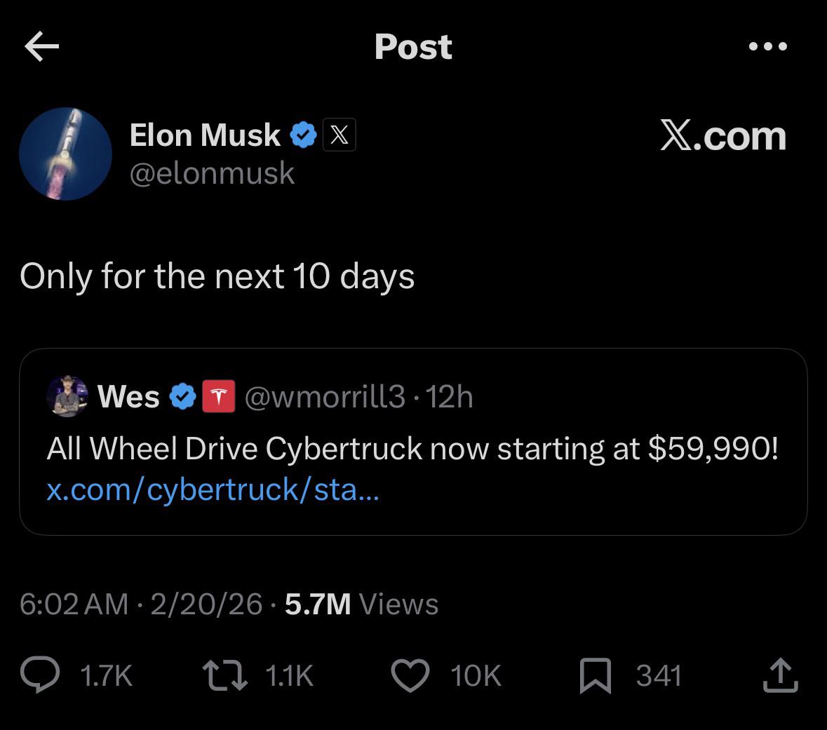Is there a link between the attack on IRAN and Cybetruck...... those damn 10 days seems to be a new unit of measure...in the Trump Imperial system.