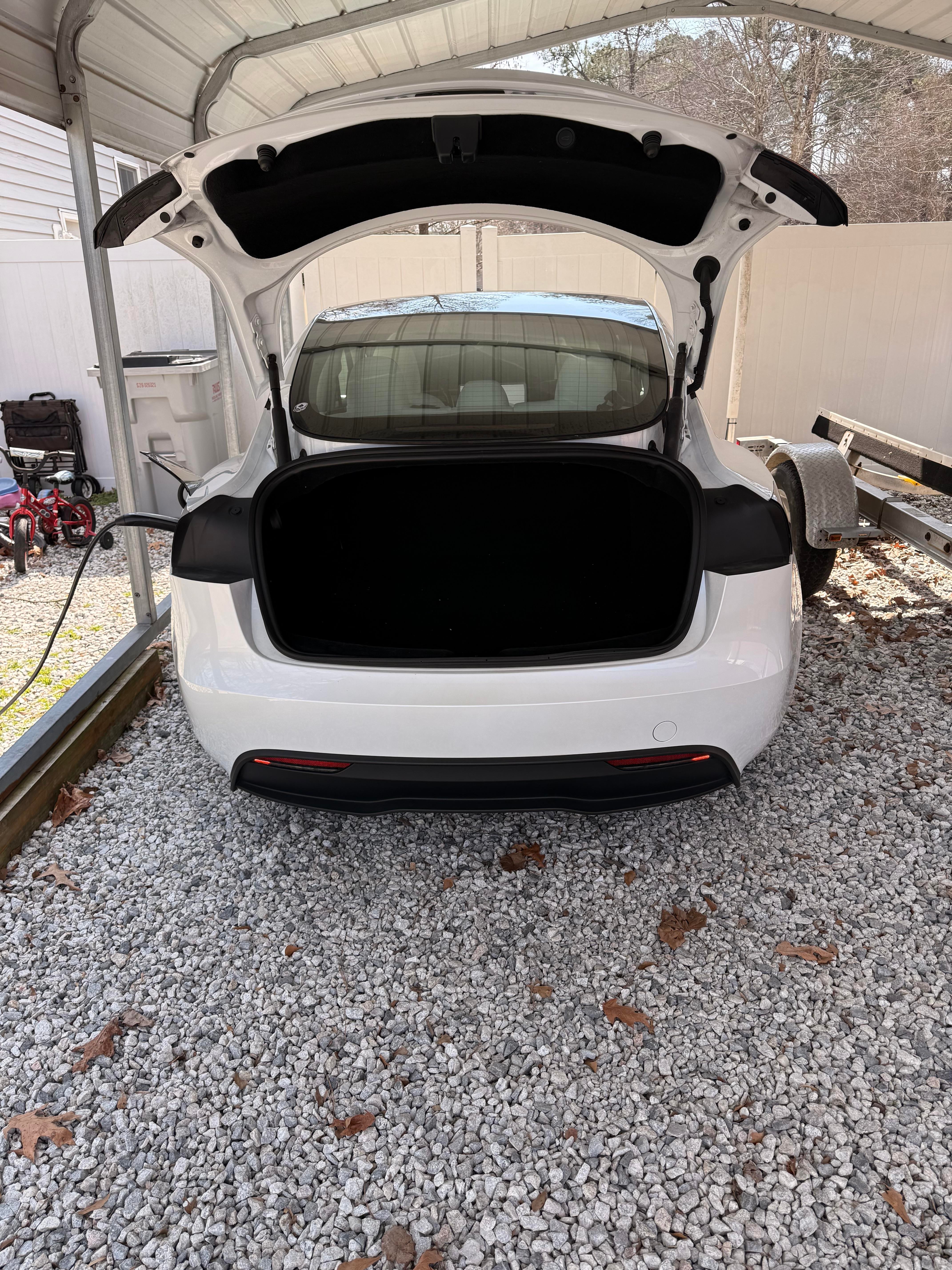After owning my ‘24 M3LR (AWD) for a year and a half I finally decided to tackle the rear deck sub rattle issue. Backstory: Purchased outright from Tesla in Aug ‘24, and had it in for service to fix the squeaky front suspension (was bad going over speed bumps (slowly esp)), sub rattle, and a few other minor interior adjustments, in Jan ‘25. All covered but the sub rattle, which they stated was “normal”. No diplomatic approach would sway them, so I accepted my loss on went in with life. But for the last year it’s been a PITA even with low bass. I don’t like to turn the bass off completely - music is just too flat for me without bass. \*Finding the Source Pump the bass up and follow year ear. Feel around your speaker deck while it’s pumping some good bass to see where it’s coming from. When I pushed down with good pressure you could hear the rattle was coming from the speaker smashing into the deck itself, but when I let go I observed (by listening) the deck lid rattling against the rear window, down by the 3rd brake light. \*The \[cheap\] Fix\* I went on AliExpress to grab some generic dynamat (sound dampener) and some double sided EVA foam tape and got to work. I compared specs with foam type and density (mainly) to the branded dynamat, but all seemed pretty close in spec. \- Sound Dampener (generic dynamat): I purchased 2 meter by .5 meter (10 mm thickness) from AliExpress for around $10. I did some conversions for the US reader (me 🤣) and that’s 6.56 feet by 1.64 feet at .394” thick. I cut a 3’ piece to fit the larger section of the undercarriage of the truck space, opposite to where the rear speaker deck is located. I didn’t remove a single thing. I used the piece of mat itself to measure with and used a sharpie to mark cut marks for the main angles on left and right side and extrapolated the line together and got to cutting with my trauma sheers from my OIF (Army) days 🥸 - Picture provided. \- EVA Foam tape: I purchased 5 meter long, 3mm thick, 15mm wide EVA double sided foam tape from AliExpress for $2.50. You gotta do the conversions on this one if you really want to know it 🤌🏼 After playing around with how much was needed and where it was needed, I keyed in on the gap between the rear window and the speaker deck. Without removing a single thing, look closely back there you’ll see there is some foam around the rear 3rd brake light already. What’s needed is that foam to extend another 7” towards the doors where the rear deck flares up towards the window. I cut 3 pieces of the foam tape, 7” long and taped the 3 together (only need to peel 2). I slid it into the space described above. It’s tight, but not too tight and shouldn’t take a super hard press to fit it in. I chose not to tape mine in as there wasn’t a reason to at this point. It doesn’t slide around in there due to foam material construction and fit, and is not visible. At this point I’m disappointed I didn’t tackle this \~ max 1hr job sooner, as the sound has never been better. Literally perfect. I’ll posted a few angle pics too showing no change to appearance externally as well. Hope this helps someone! Cross posted in another Tesla thread.