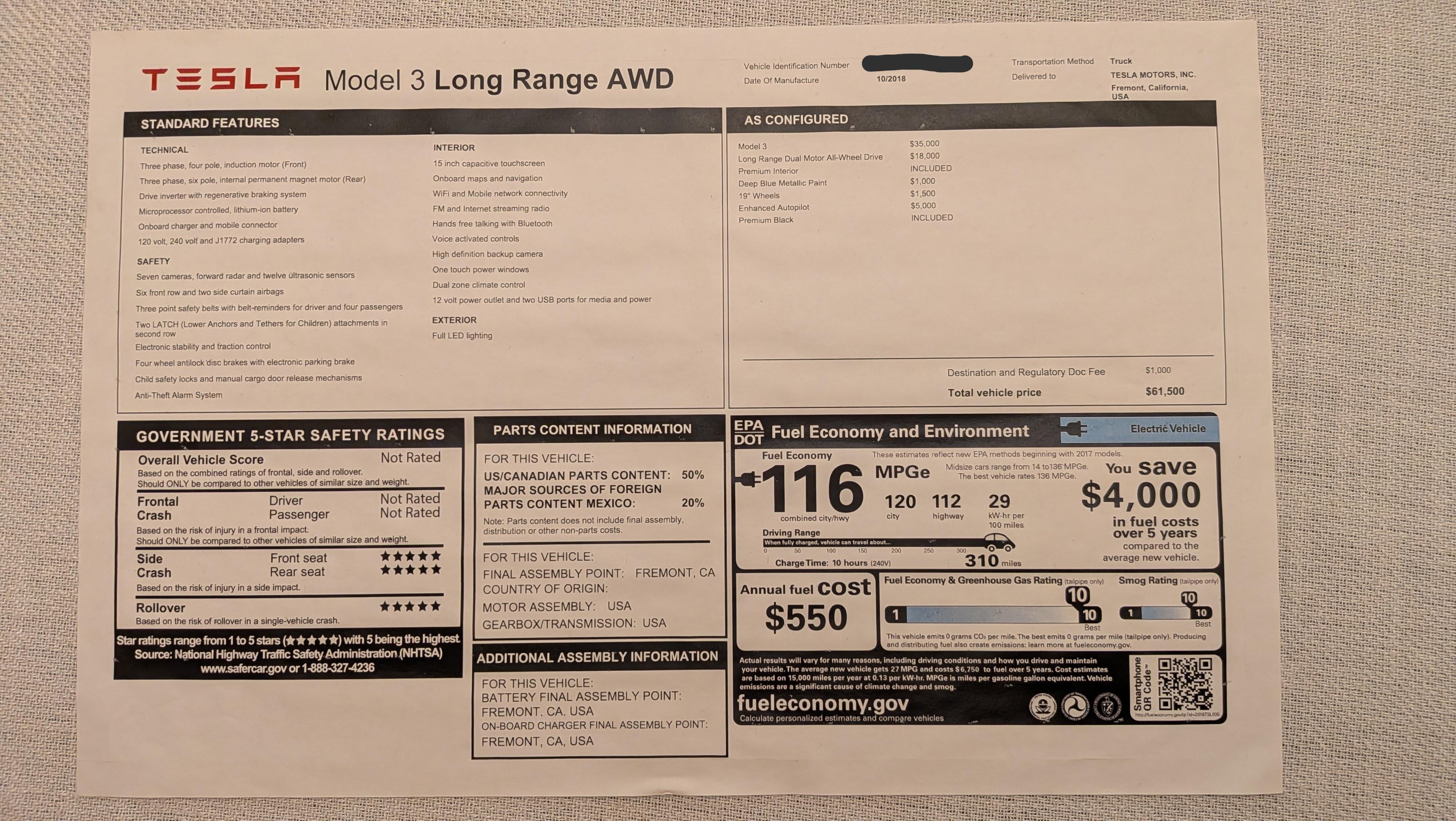 I have left my window sticker in the car on purpose when I traded in my 2018 Model 3 for the 2025 Model Y. The Model 3 Long Range RWD was more expensive than my Model Y AWD