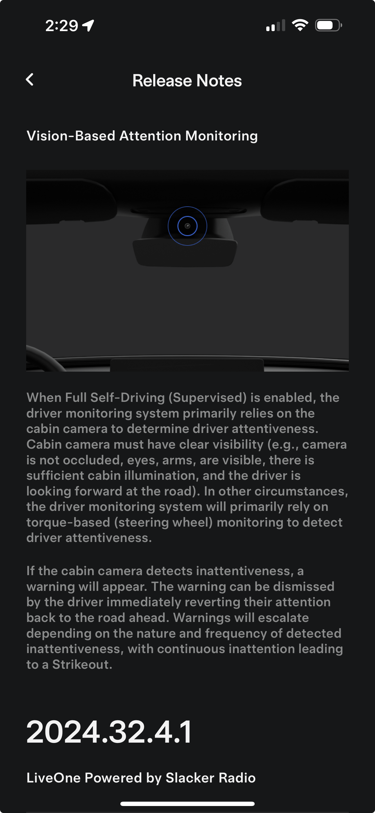 Hello, the article you guys published yesterday ‘Every Hands-Free Driving System Available in 2024’ contains a factual error. The article states 'Both Autopilot and Full Self-Driving are hands-on only.’ However, as of FSD 12.4, attention monitoring has switched to vision-based, no longer relying on a steering wheel nag, which makes FSD hands free, as your hands are no longer required on the wheel. See the attached screenshot below:  https://preview.redd.it/q7s1ecnmldwd1.png?width=1290&format=png&auto=webp&s=9ca1b4a168e33b233c32a97ffe3eea1549d116cf Currently, over 96% of eligible cars are on the [12.5.4.1](http://12.5.4.1) branch (source: TeslaFi), indicating that hands-free FSD has been launched to the general public. Please let me know if I made any errors in pointing out this error.