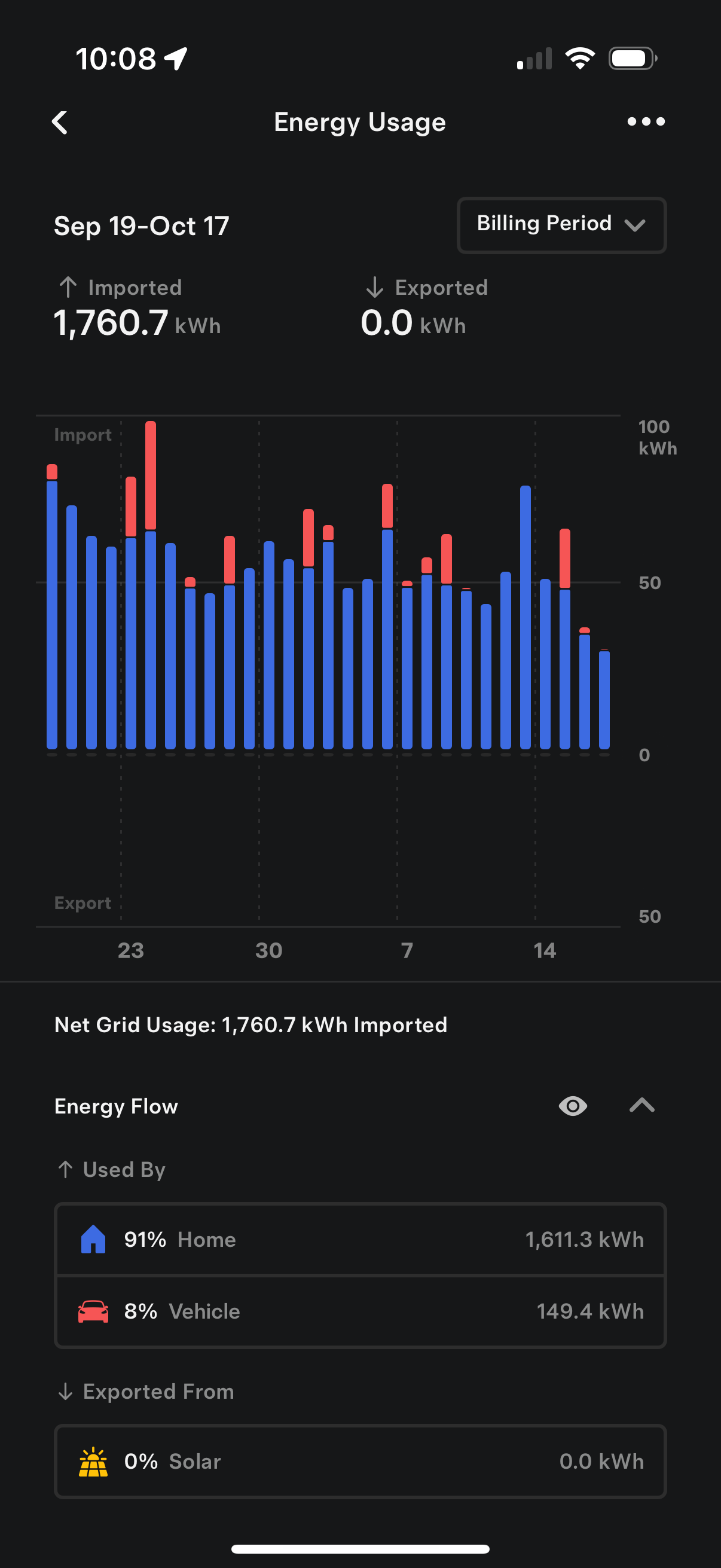 The other great thing about this, at least in Texas, is that it consists of 100% green energy (all wind and solar). Not just what it’s using to charge the car, but all the electricity being used in the home as well.