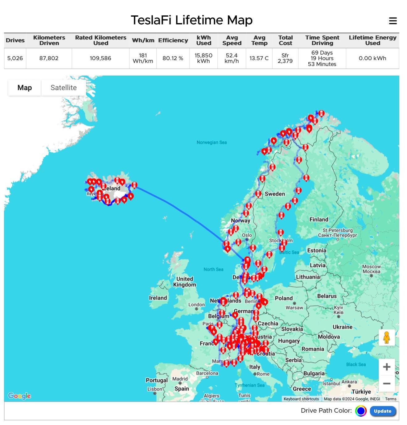 This would be a lot more impressive if it was in Northern Canada or even northwestern Alaska. Europe is relatively dense in comparison with charging infrastructure, so it's considerably less impressive. Maybe add Greenland to your Tesla tour?