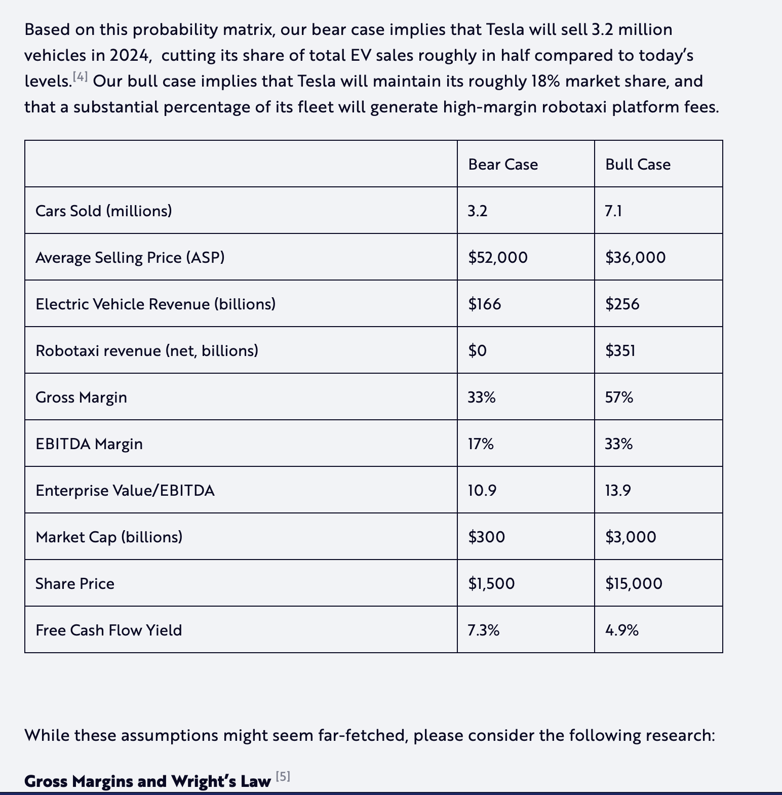 oh no ARK makes it sound very, very scientific. Basically, this the bear case is the absolute scientific bottom of what tesla could do. The bull case is ark just being careful and conservative with their meme stock forecast here. \[edit\] one bit that's particularly amusing is that even though Tesla didn't even come close to living up to the bear case, and even though in the bear case its market cap would have its stock speculatively priced for insane growth trajectories, Tesla's stock *still massively exceeds* the bear case market capitalization there. Within an absolutely insane prediction, their stock price / market cap wasn't quite insane enough.