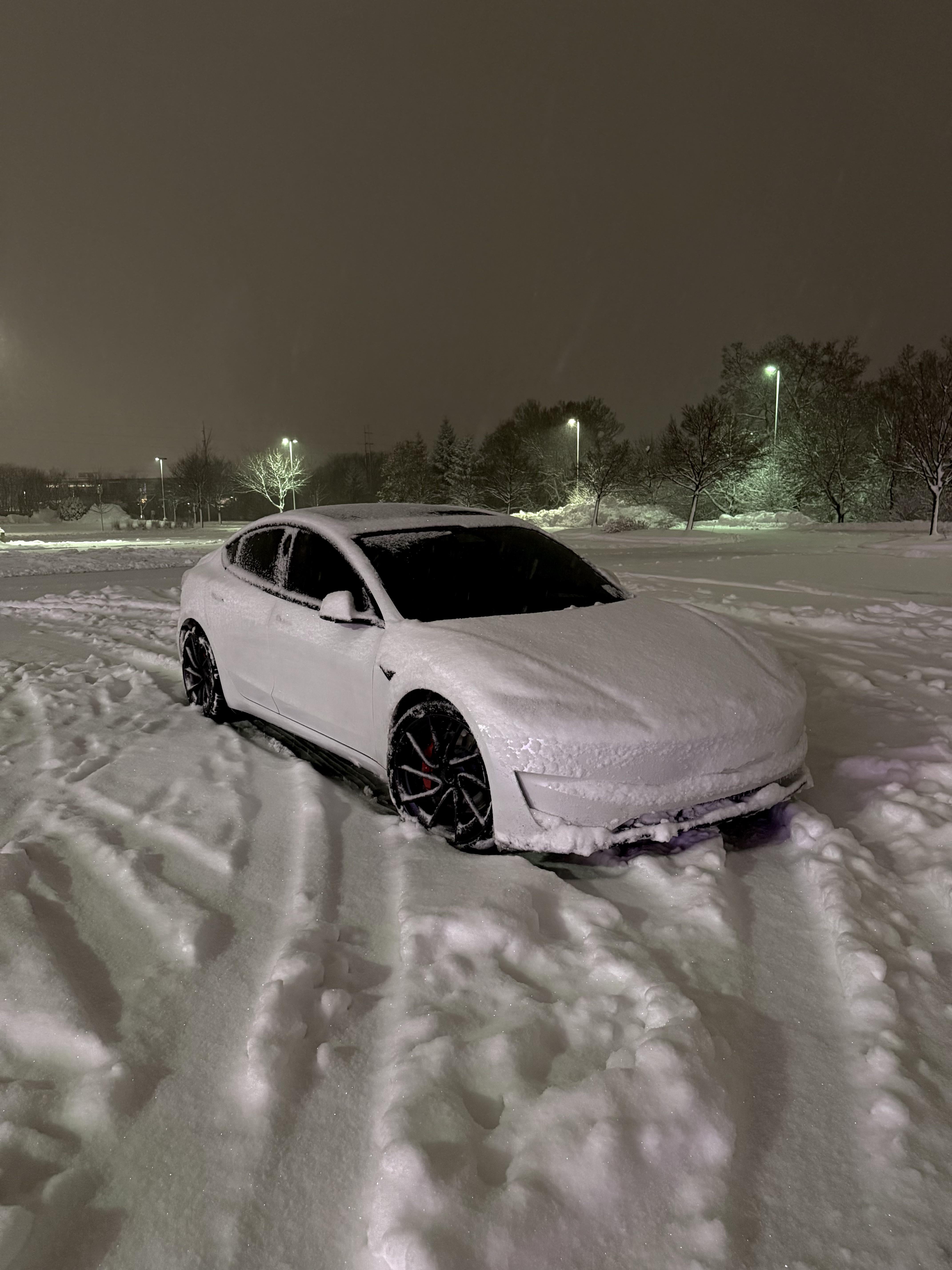 This loosks like you had a lot of fun. Snowed out lights, and that tint looks dark as hell and looks pretty cool. The one bad thing about evs is that there is no wasted energy to heat the hood or grill and melt the snow. There is no extra engine heat to warm up the car. I wish the model 3 had a headlight sprayer to clean it and wiper on the rear window. The water sticks to the rear window, and the defrost is not very fast and soaks up juice.