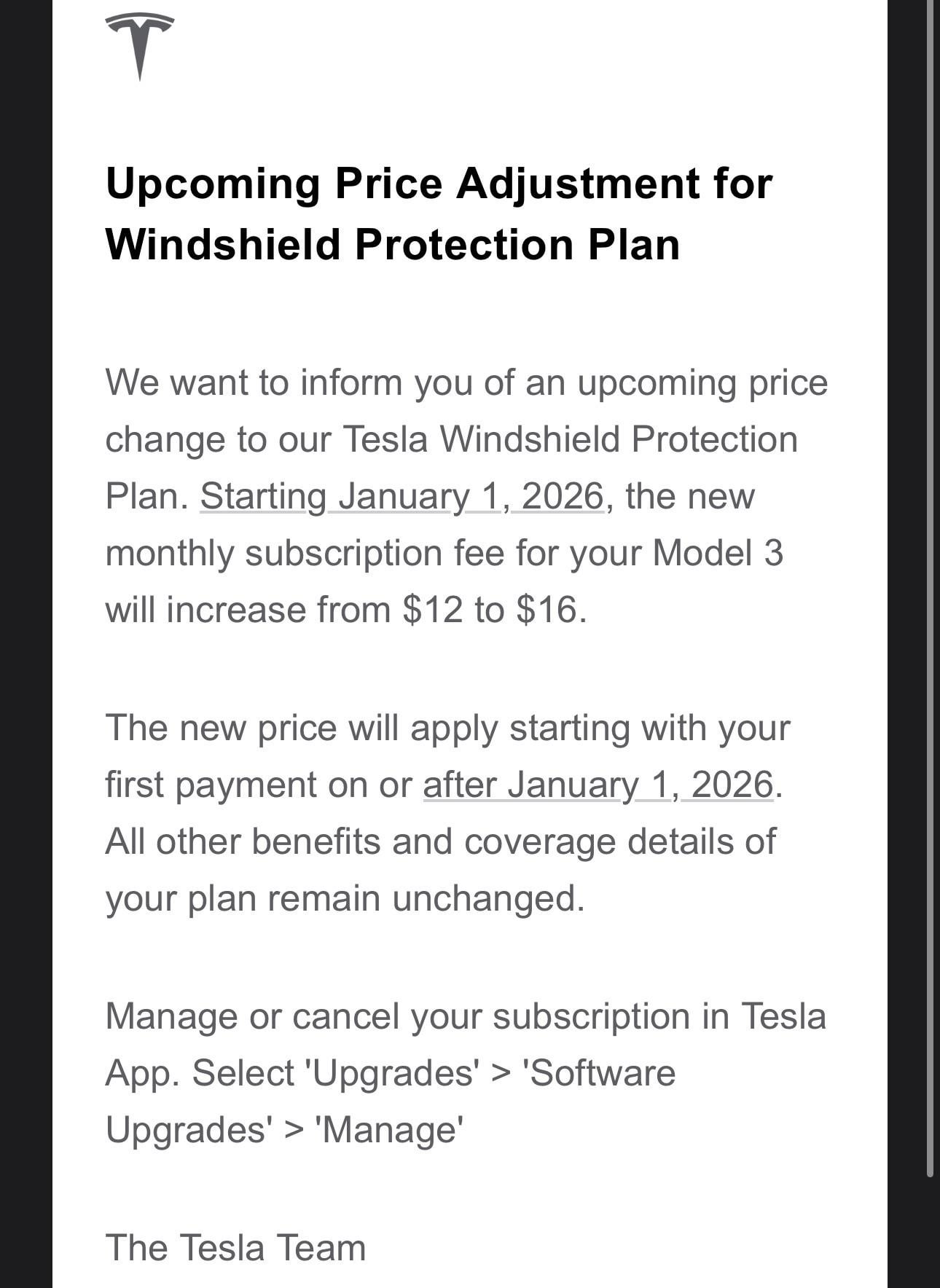 Did they go up on the Model Y as well as the Model 3? We haven’t received an email about that for my wife’s Model Y yet. Only my Model 3 so far