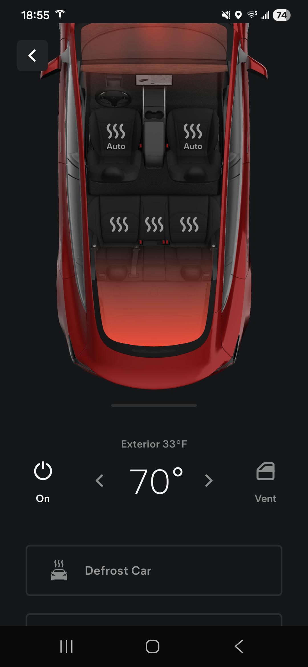 See the problem is that even when I just set the car to precondition, it appears that it's turning the defrost on