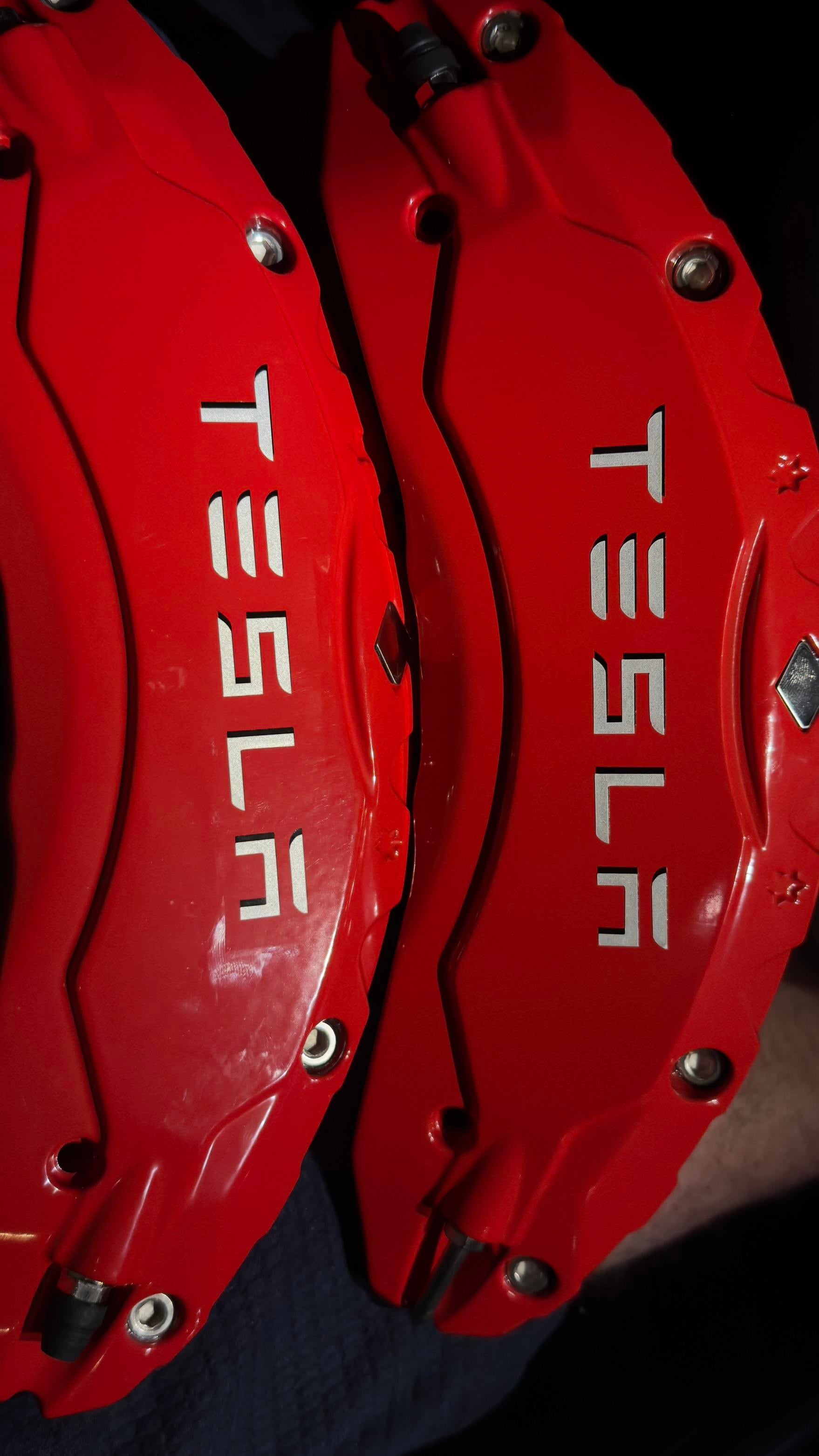 Installing my caliper covers finally lol and I noticed there are black and silver labeling stickers. Obviously they all 8 say Tesla ..4 black and 4 silver. Decided to get a more depth look and to me they turned out great. Merry Christmas! 🎄🎄🎄