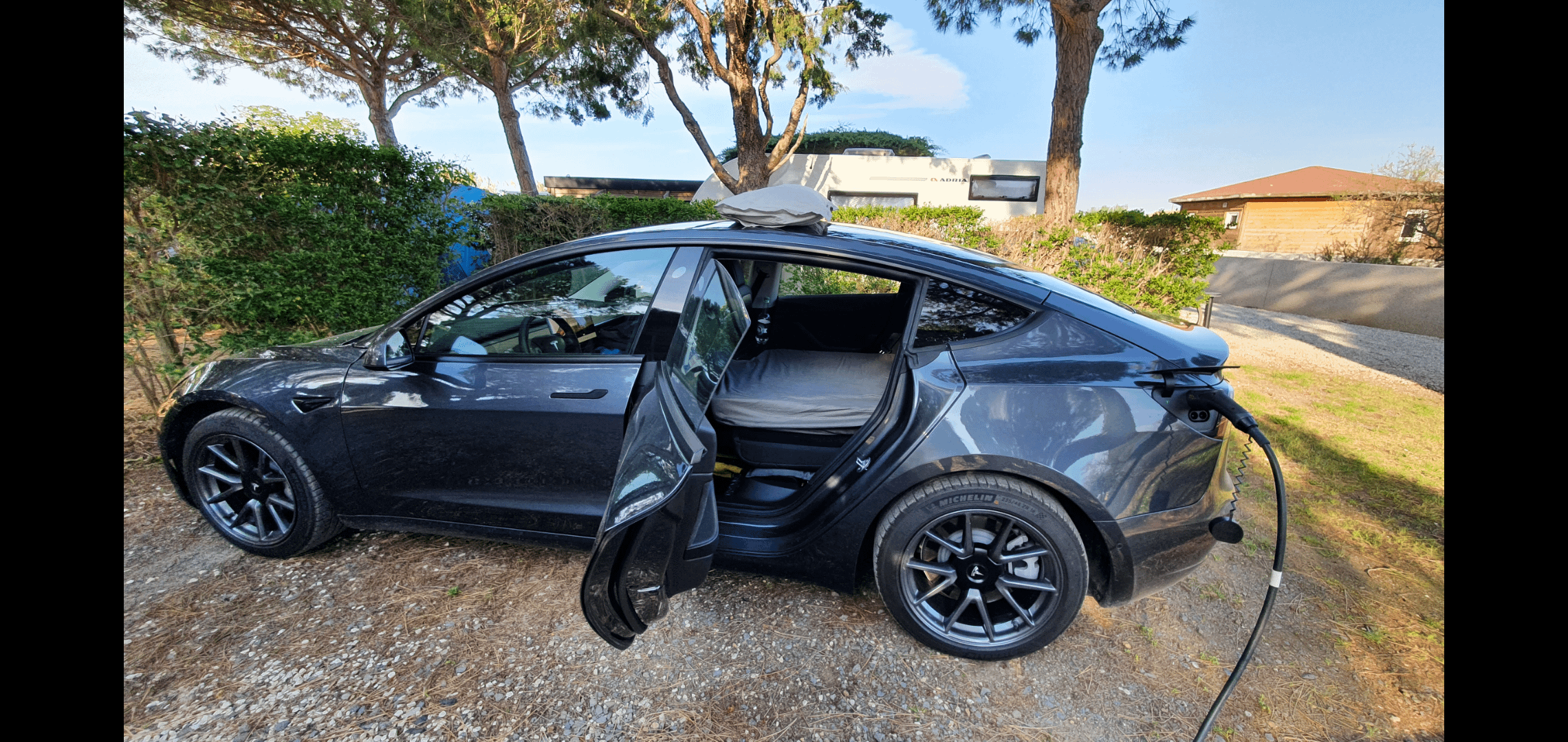 You can buy a simple matress eg from ikea for may be $50 and even cut it easily into the size that fits your needs. Just make sure you remove the bottom cushion from the back seat to get a really flat surface. I use a small on board flight trolley to fill in the space between the back of the front seats and the start of the folded back seats. Camping and sleeping in my Model 3 has been one of my favorite parts of Roadtrips throughout Europe and even Africa https://preview.redd.it/6e9sjseyezag1.png?width=2280&format=png&auto=webp&s=2e95b40fbd254ec6dc7287b49ad2f7f58bd2bc85