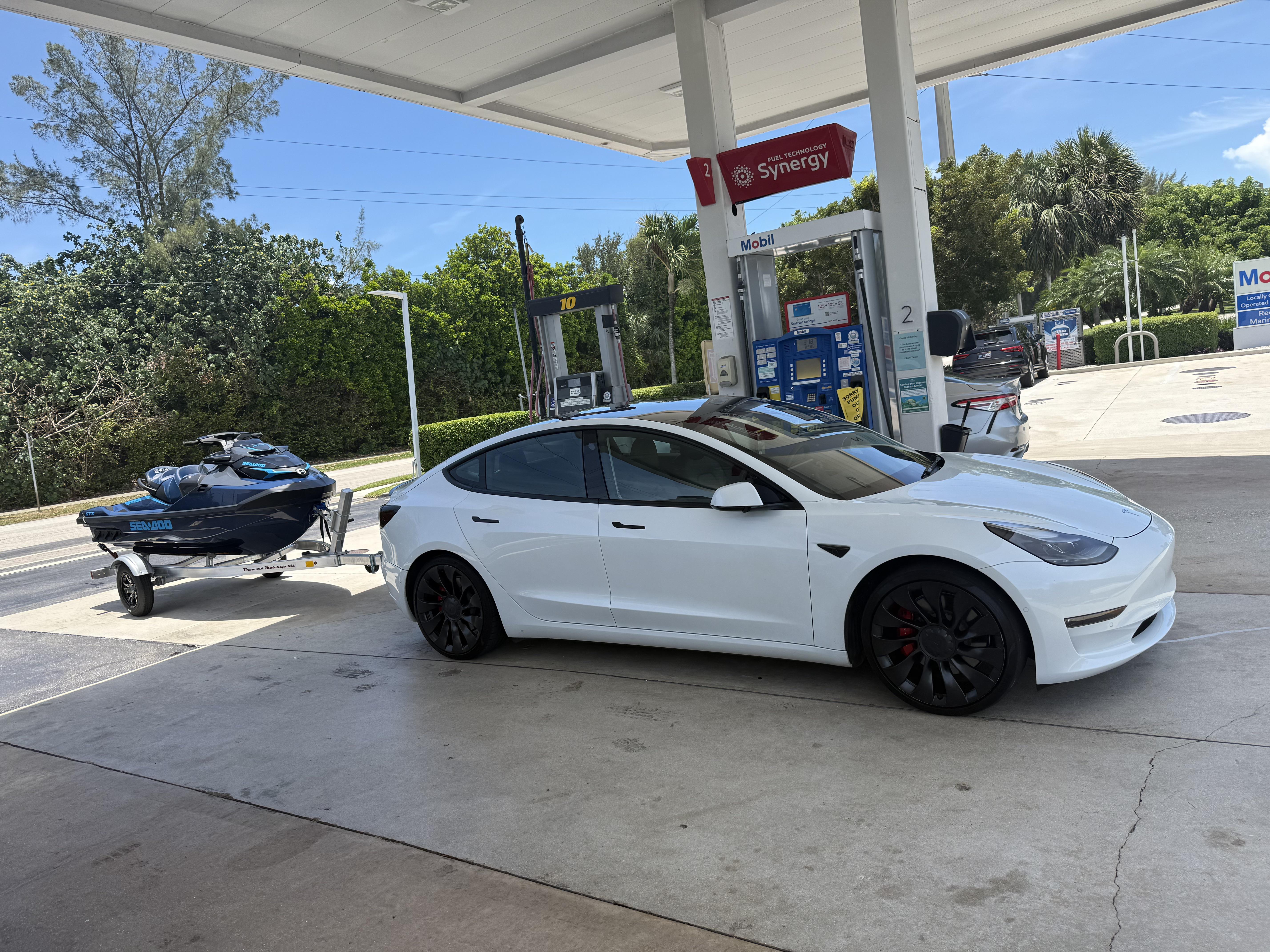 I don’t see why it would be any different. It’s just dependent on the mounting area and that shouldn’t be any different between the trims. The official tow kit from Tesla (model 3 tow package) for some other years says 2200 pounds but it’s a 2 inch receiver. Maybe they redesigned the mounting area a little (although in other countries it’s available for this year model) but for this one the aftermarket tow bar manufacturer lists it at 2000 pounds. The problem with is being a performance is just the lower suspension and different rims, but with low tongue weight and a raiser there shouldn’t be any problems. I’m personally fine towing a jetski with it; but with everything where you’re operating outside of official specifications, you should be careful and reasonable.