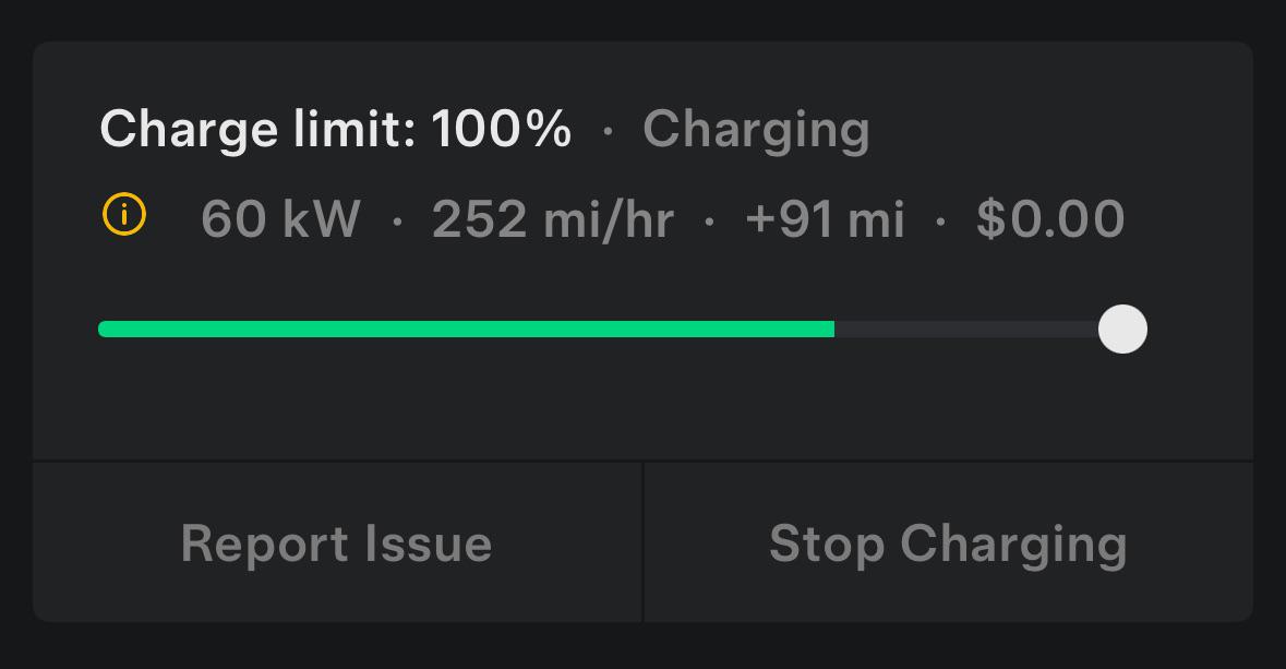 Well it shows plus 91 but I did the full charge of 270 miles and I’m at the one area I go to and in 2 months of owning the car I had probably 5x free supercharging here. Checked my account and indeed was not charged. Getting my home a hardwired charger this week but until then I’m wondering if this is a glitch or Tesla being nice