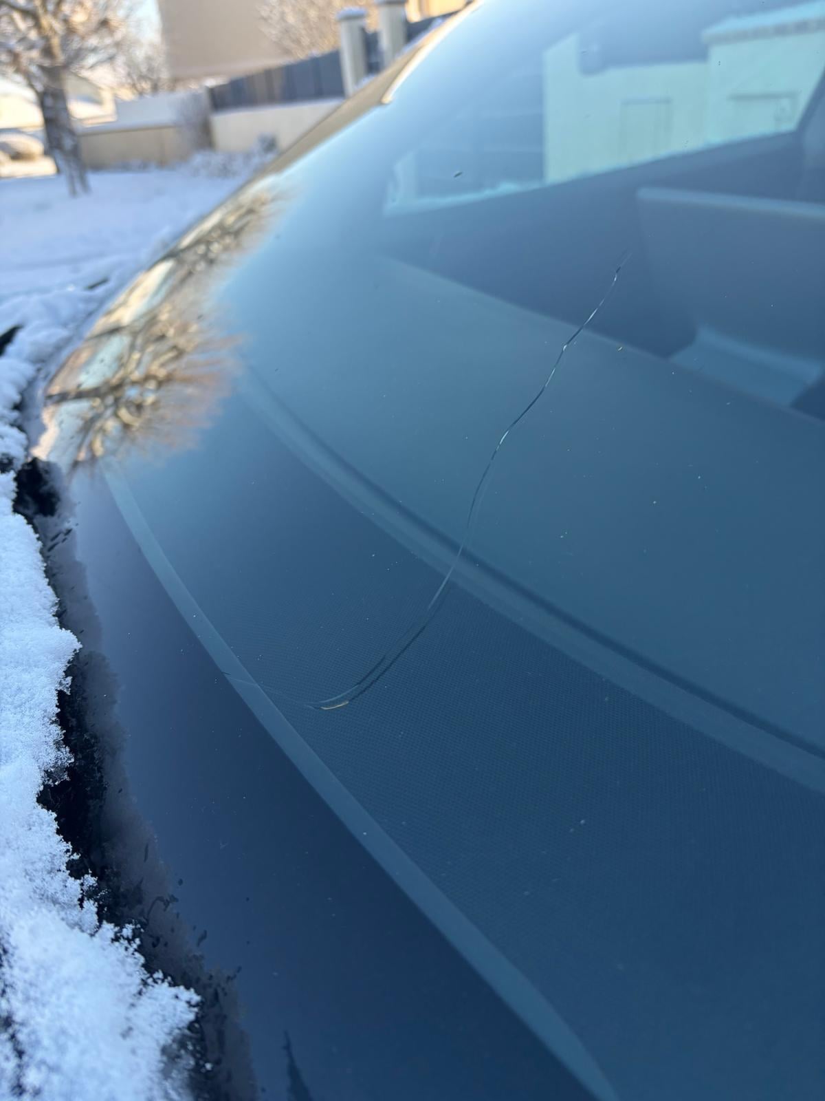 I live in France and woke up in the morning to defrost my car. I then went to scrape it and suddenly noticed a crack in the windshield. I am certain that it was caused by the de-icer. The de-icer was at 27°C, yet Tesla's official statement says that it is "safe to use and will not damage the vehicle." I think the crack was caused by the heat from the windshield with snow on it. 🚨Do not use the defrost mode during periods of inclement weather.