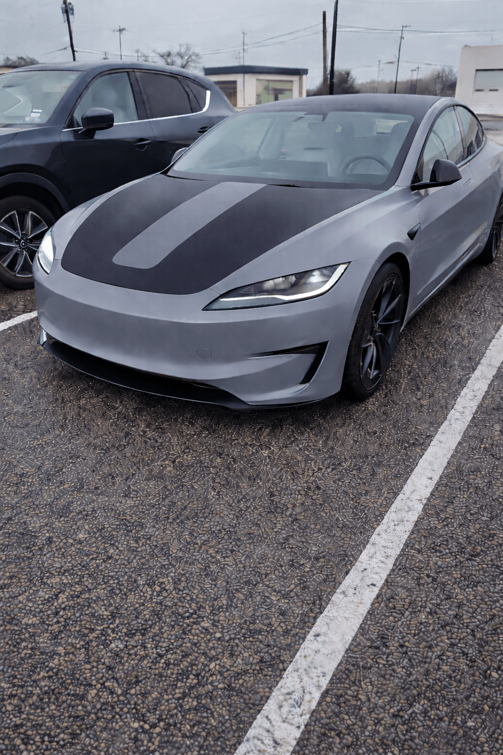 Got my first tesla last week and getting the color changed to stek dynogray in a couple days but I saw a vid of xpel moss green with a hood stripe. Debating if I should the same but in dynogrey. had ai do some rendering.