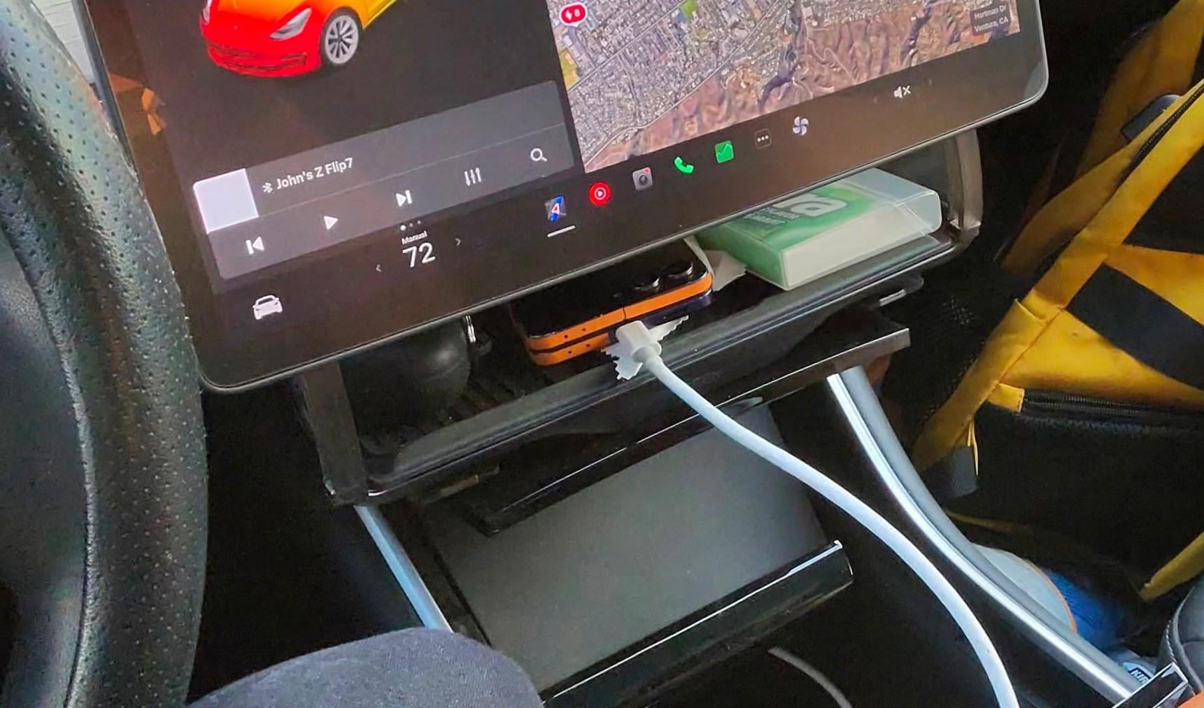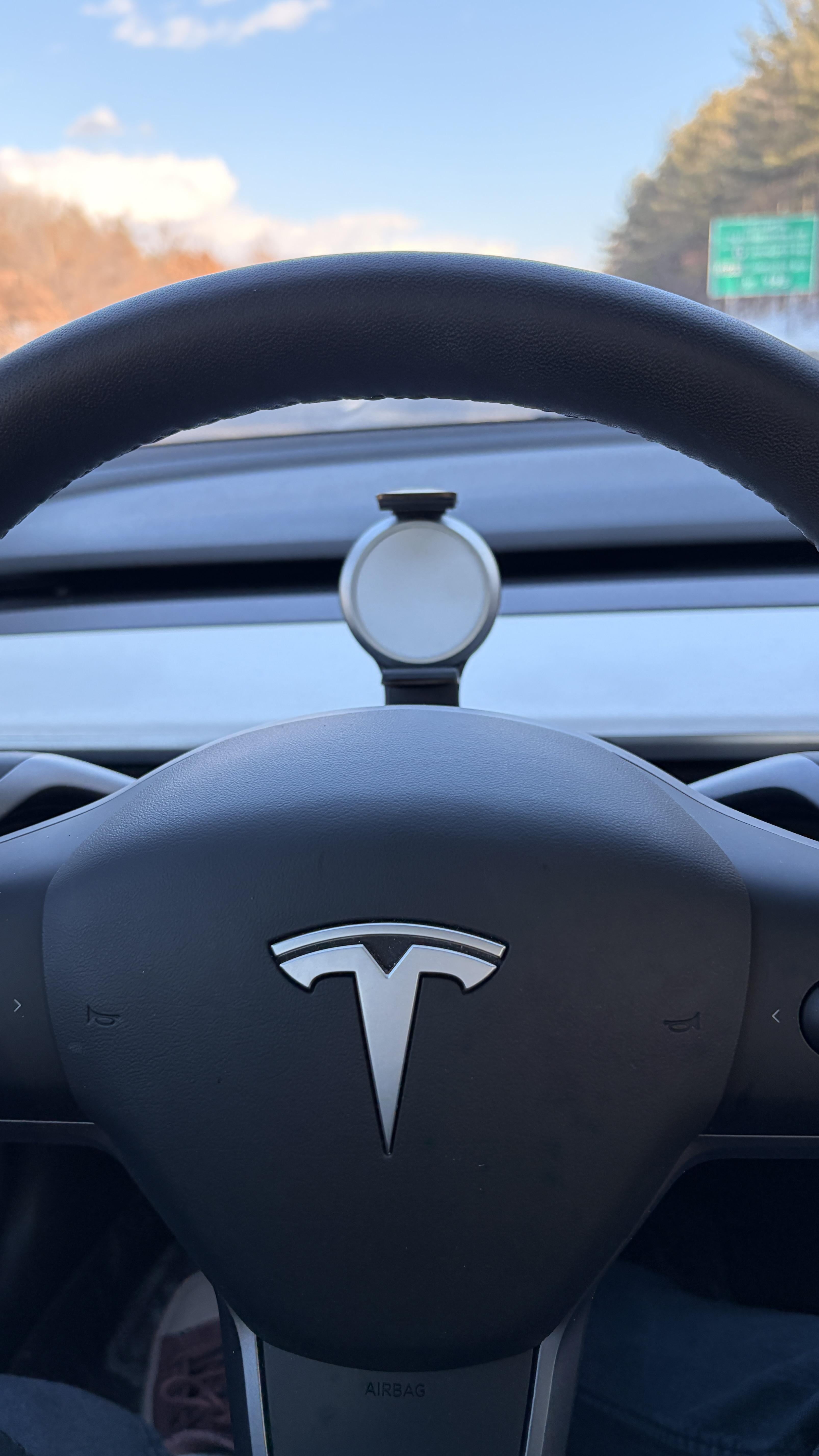 Yeah, it’s all starting to make sense now. His other “mod” is a wireless charger mounted to his steering wheel, because he’s using the built-in one to hold an emblem! 🤣
