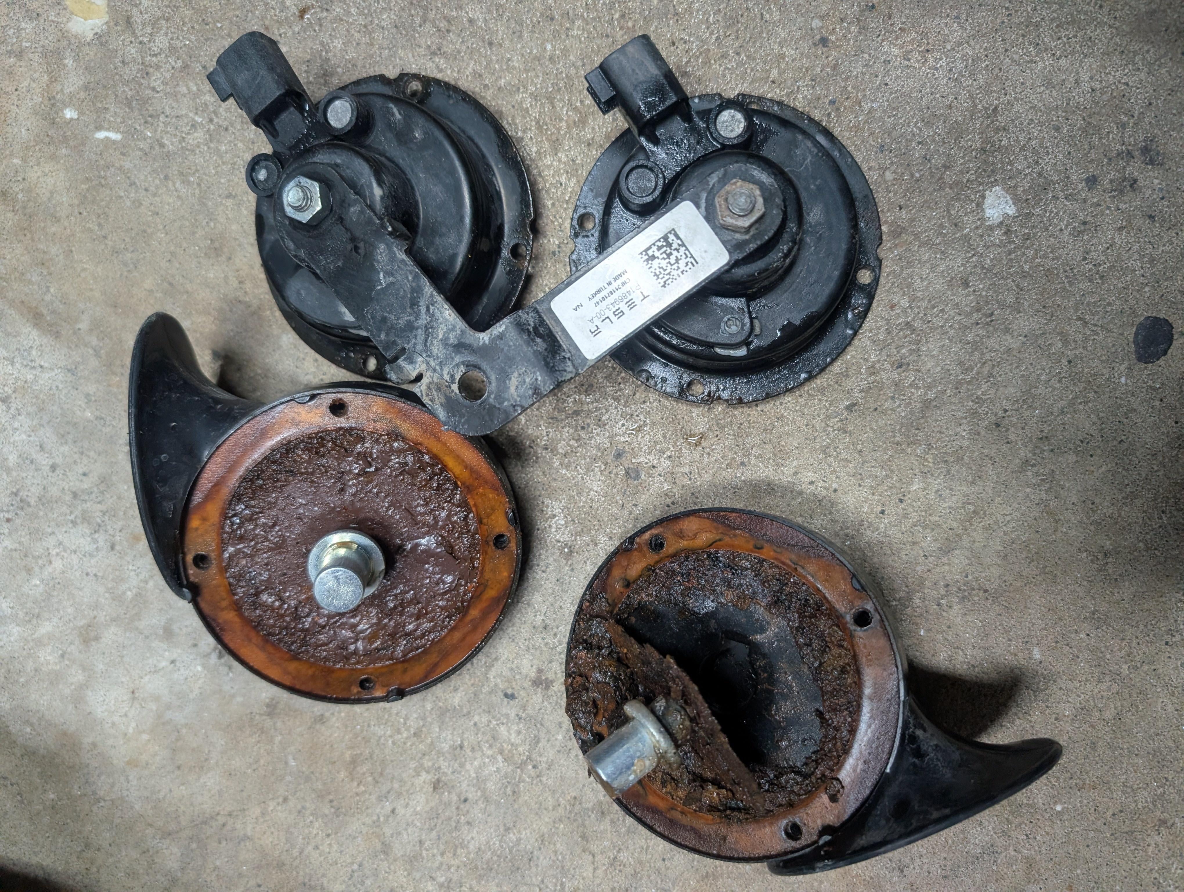 yeah same here, horn rusted out, the frunk outside of the tub was never meant to be waterproof but i didn't think the horn would be rusted. never had a horn break on me before neither. also installed third party ones, will see how it goes.