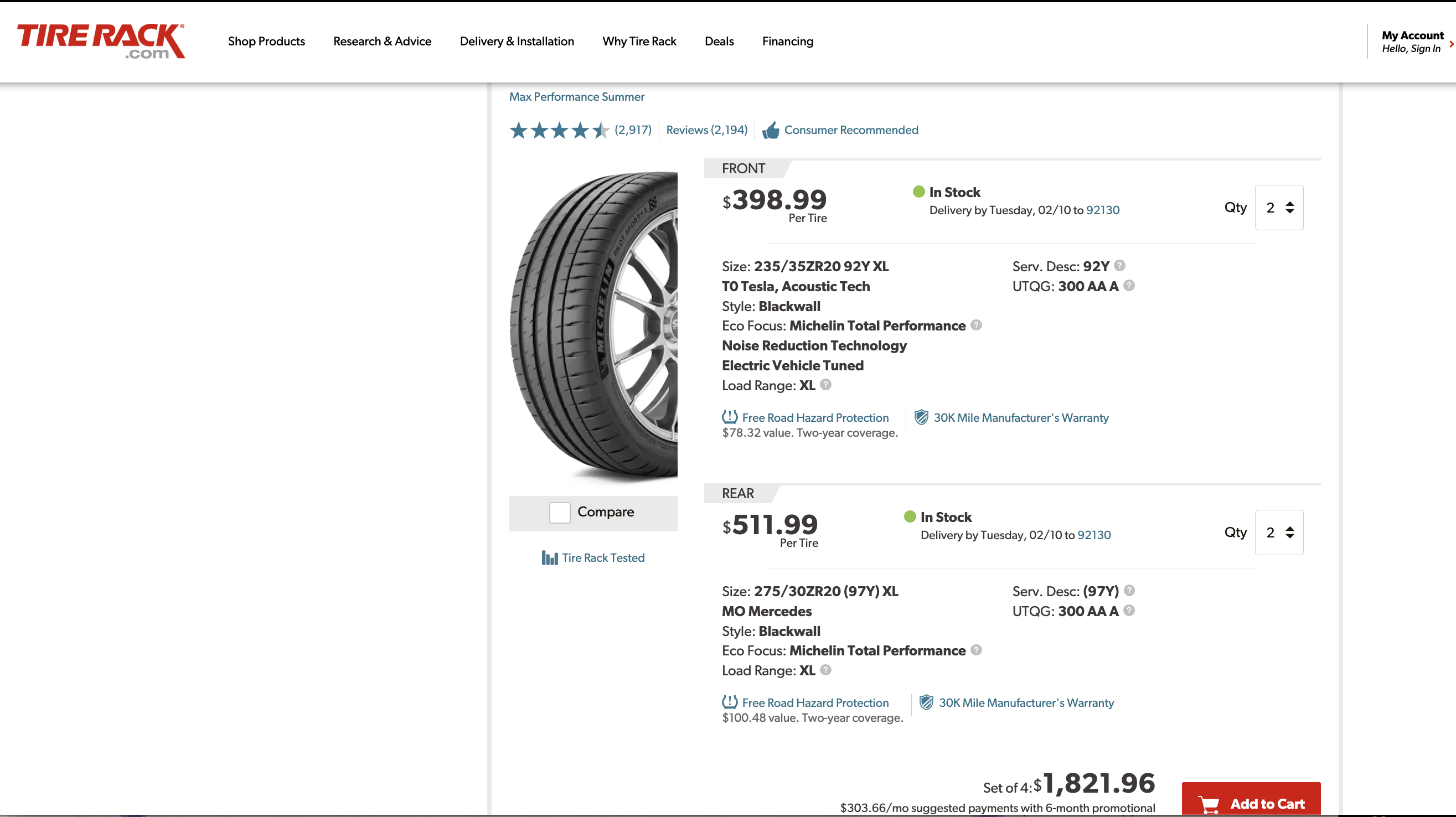 That's going to suck big time when it comes time to replacing those tires. For reference, Michelin Pilot Sport 4s will be around $443 each for the rear tire in 275/30/20 and $387 each for the front in 235/35/20. And you won't be able to rotate the tires That's actually the cheaper ones that doesn't have the accoustic barrier. If you actually want the OEM ones with the accoustix barrier that come with the car, the prices are $512 each for the rear and $399 each for the front.... The tires are 300 rated tire, so that will last you around 30k miles for a normal car. With an heavier EV... closer to 20kmiles. Welcome to paying for exotic car tire prices for a non-exotic car :) https://preview.redd.it/wavhbudhieig1.png?width=2630&format=png&auto=webp&s=ea8be0fab83dd5bfff482ffb091efd936eb8ac91 Mounting and balance, extra :)