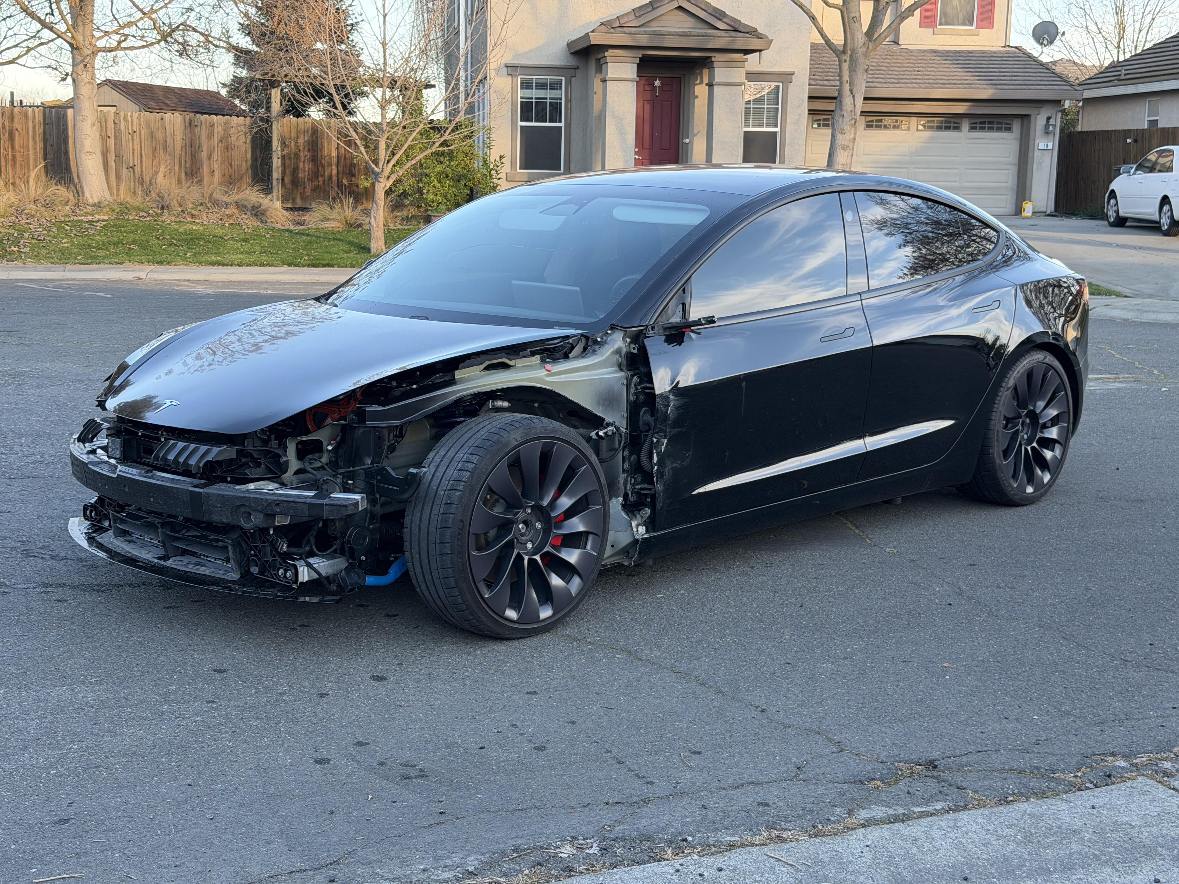That's gonna be roughly 5k for new fenders, bumper cover, hood, sensors and pray the radiators are fine not to mention the bumper itself. Although ebay you might be able to find painted and good condition fenders used but it took me 2 months just to find one fender in my color that wasnt torn up. If the front suspension is chewed up (I just happened to price these parts out) its $90 for upper control arms, $170 ish for struts, the two lower control arms i think cost over $300 for the pair each wheel. Cant imagine tie rods and sway bar end links are terribly expensive. Shit while you're doing it just go for the highland suspension there plenty of videos on it now its the same price as pre highland struts so why not. And if for some reason you dont know you can go to teslas parts website for it all but I just put in a service request with the list of parts and they order em. The shipping costs from epc.tesla.com are outrageous.